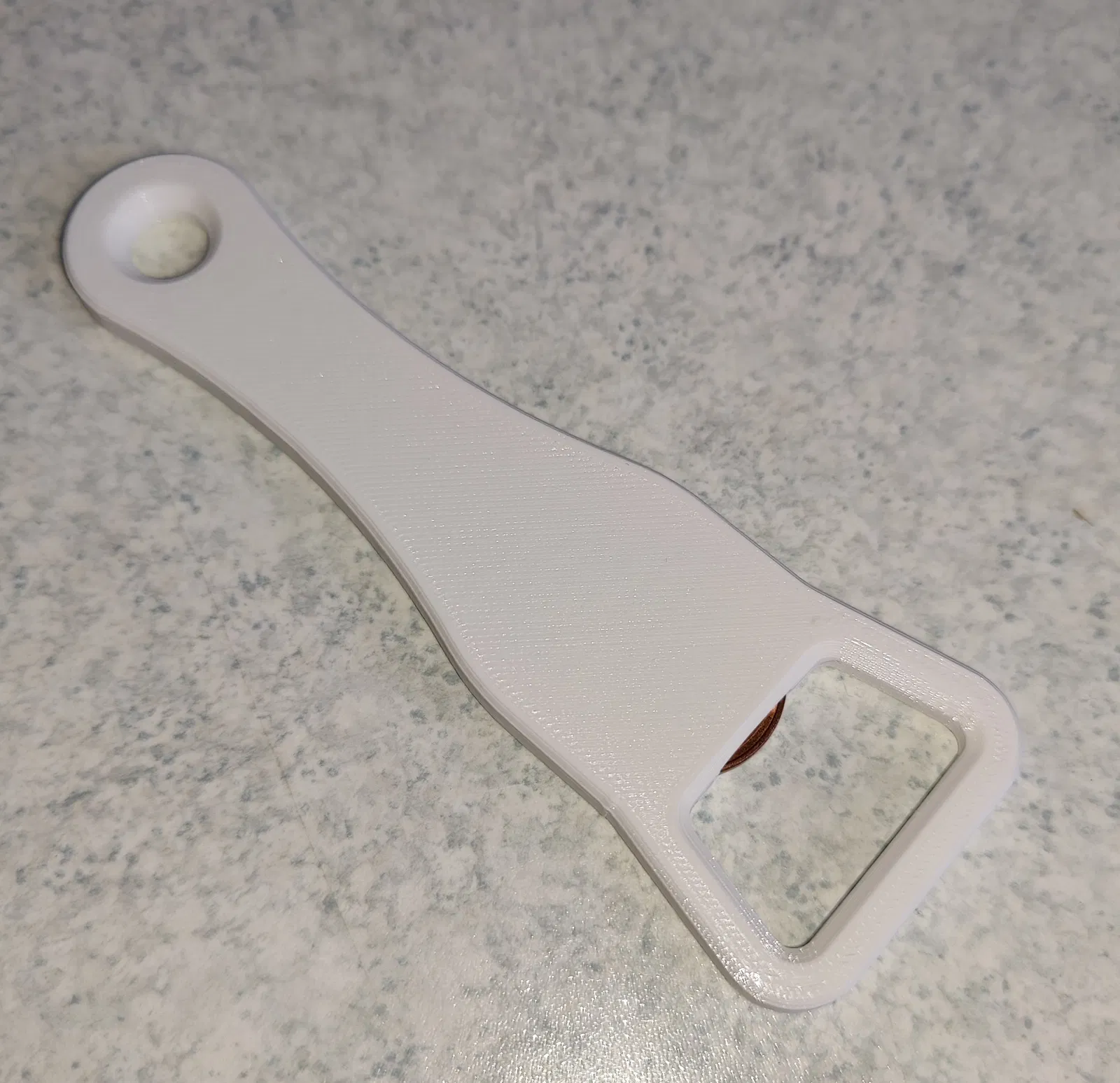 Mô hình mở bia đơn giản, có khe để gắn đồng 5 cent Euro. File gcode có tích hợp lệnh tạm dừng ở 4mm để bạn có thể nhét đồng xu vào một cách dễ dàng.