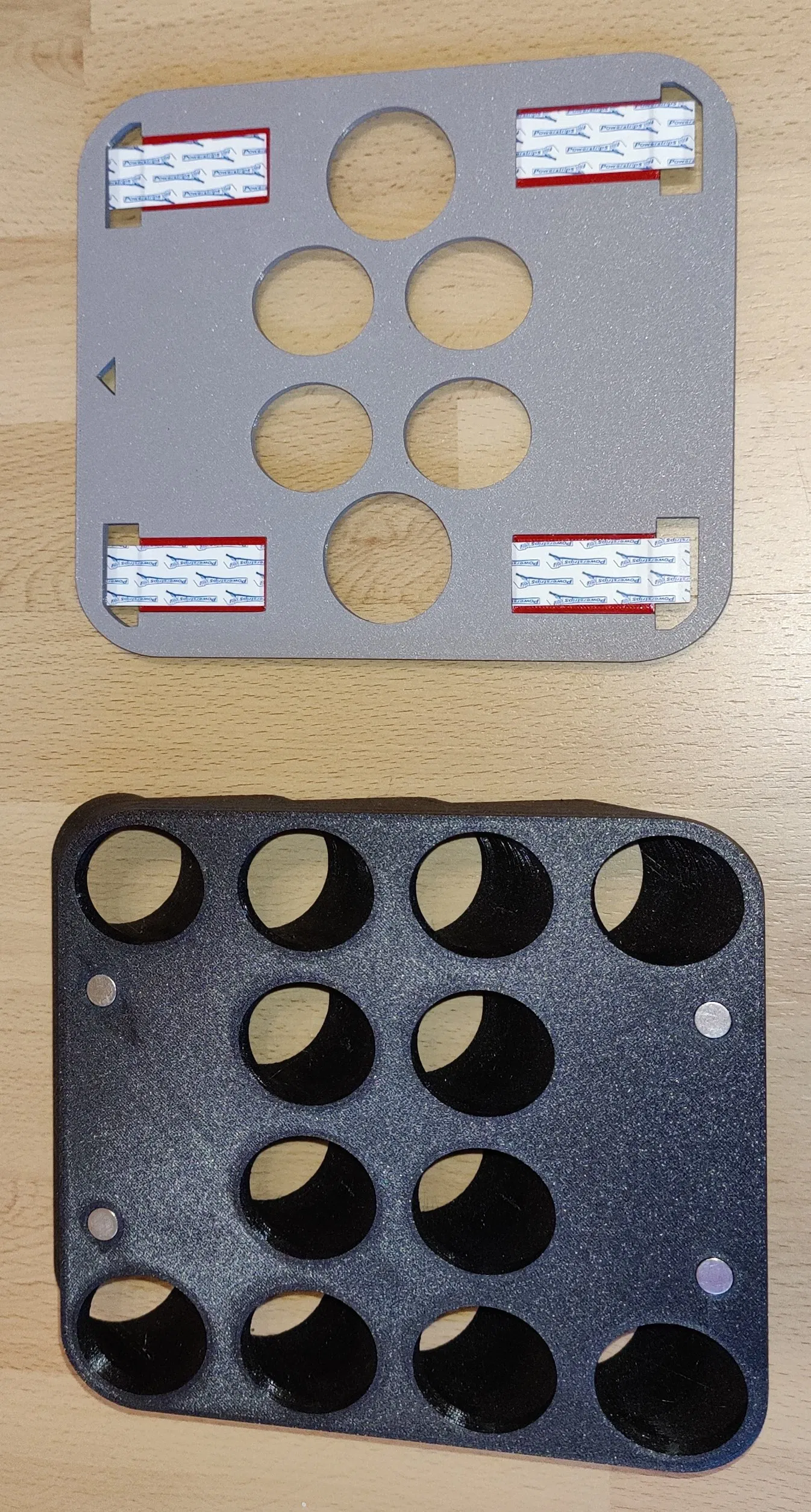 Ngoài ra, bạn cần thêm: 4 x nam châm Neodymium đường kính 10mm x 5mm, lực hút 3,5kg (ví dụ: https://www.mtsmagnete.de/neodym-scheiben-magnete/scheiben-10mm-19mm/neodym-scheibenmagnet-10x5mm-vernickelt-grade-n52-magnetisiert-durch-5mm/a-2504) 4 x Powerstrips Large chịu được tới 2kg (ví dụ: https://amzn.eu/d/7nRgb1s) 4 x đĩa kim loại đường kính 20mm x 2mm (ví dụ: https://www.magno-sphere.de/metallscheibe-20mm-x-2mm-mit-loch-und-senkung-nickel/a-2189/)