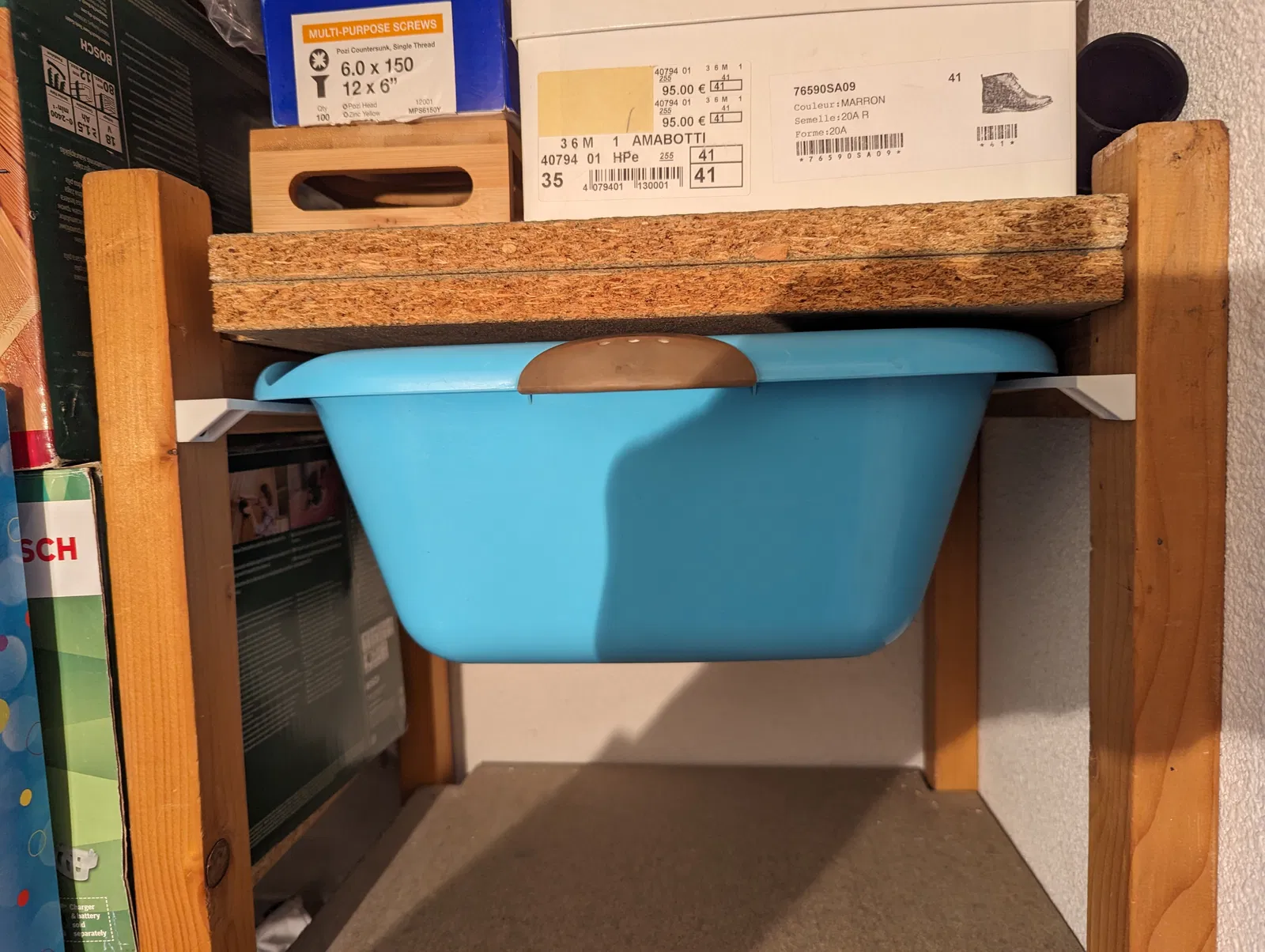 Một cái ray để đựng đồ. Mình dùng để đựng giỏ, nhưng chắc chắn các bạn có thể tìm thấy những công dụng khác nữa đó.