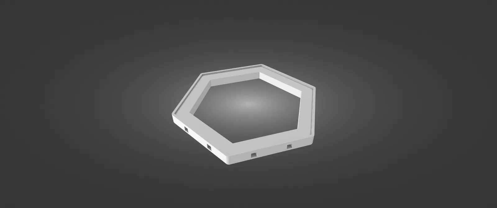 Tiếng Việt Tôi đã làm cho đáy mô hình dày hơn một chút và điều chỉnh vị trí cũng như kích thước của các lỗ nam châm. ##### Chế tạo Mô hình được tạo bằng Autodesk Fusion 360. ##### Hậu xử lý Các nam châm phải được dán theo một quy luật nhất định! Có 2 nam châm mỗi cạnh, vì vậy mỗi ô sẽ kết nối với mọi ô khác mà không bị đẩy ra. Nam châm đầu tiên có thể dán theo bất kỳ hướng nào, nhưng nam châm còn lại ở cùng một cạnh phải được dán với cực đối diện! Việc dán các nam châm tiếp theo có thể được thực hiện bằng cách đặt các nam châm rời trên một cạnh của khung đã hoàn thiện, cho keo vào các lỗ nam châm, và ép các khung lại với nhau. Hãy kiểm tra từng cạnh sau một thời gian keo khô! ##### Nam châm Tôi đã tìm thấy một cửa hàng ở Đức cho các nam châm khối 3 mm phù hợp: supermagnetic.de ##### Lưu trữ Tôi đã tạo một khay đựng có nắp để dễ dàng lưu trữ và vận chuyển các đế lục giác.