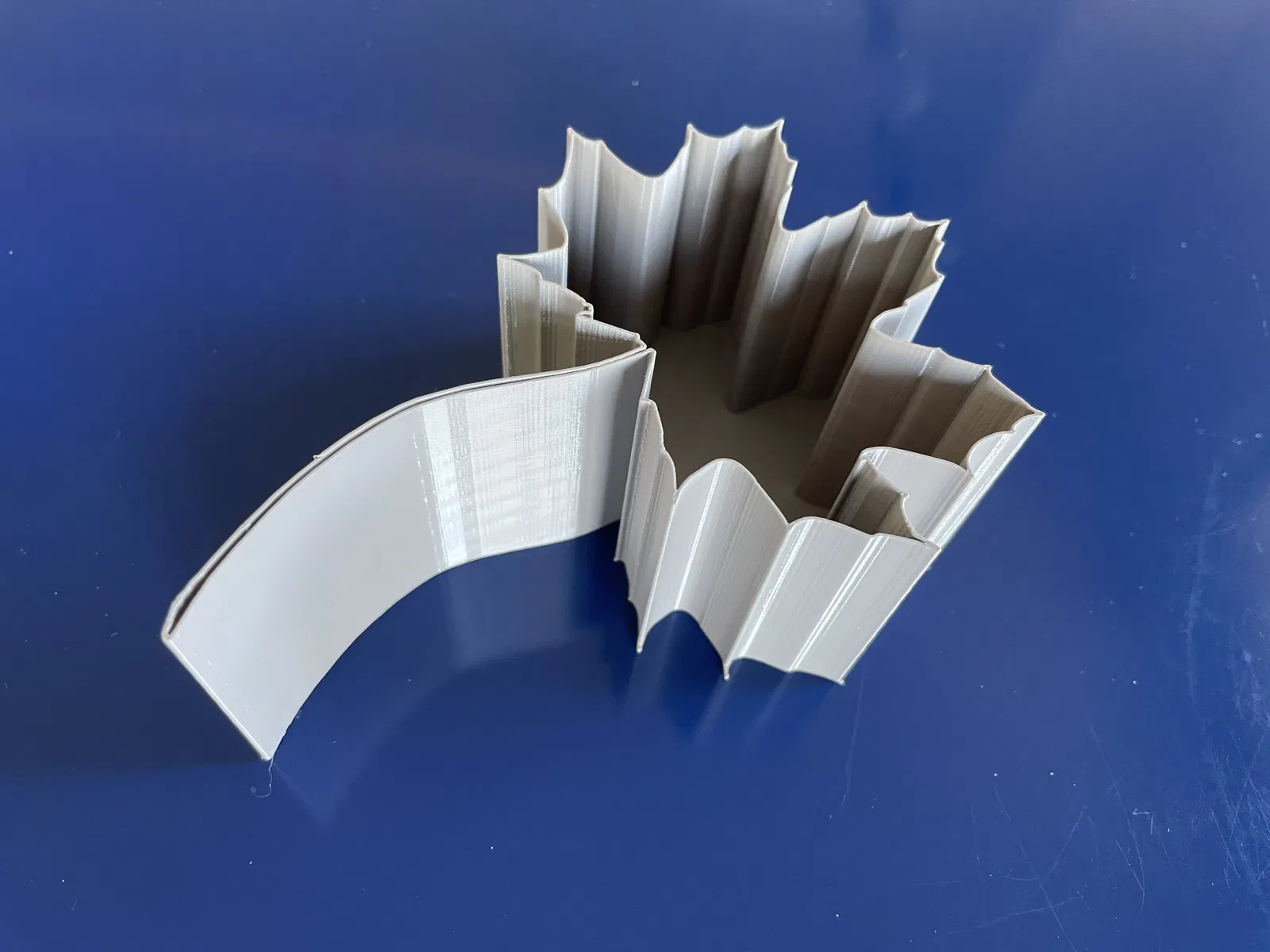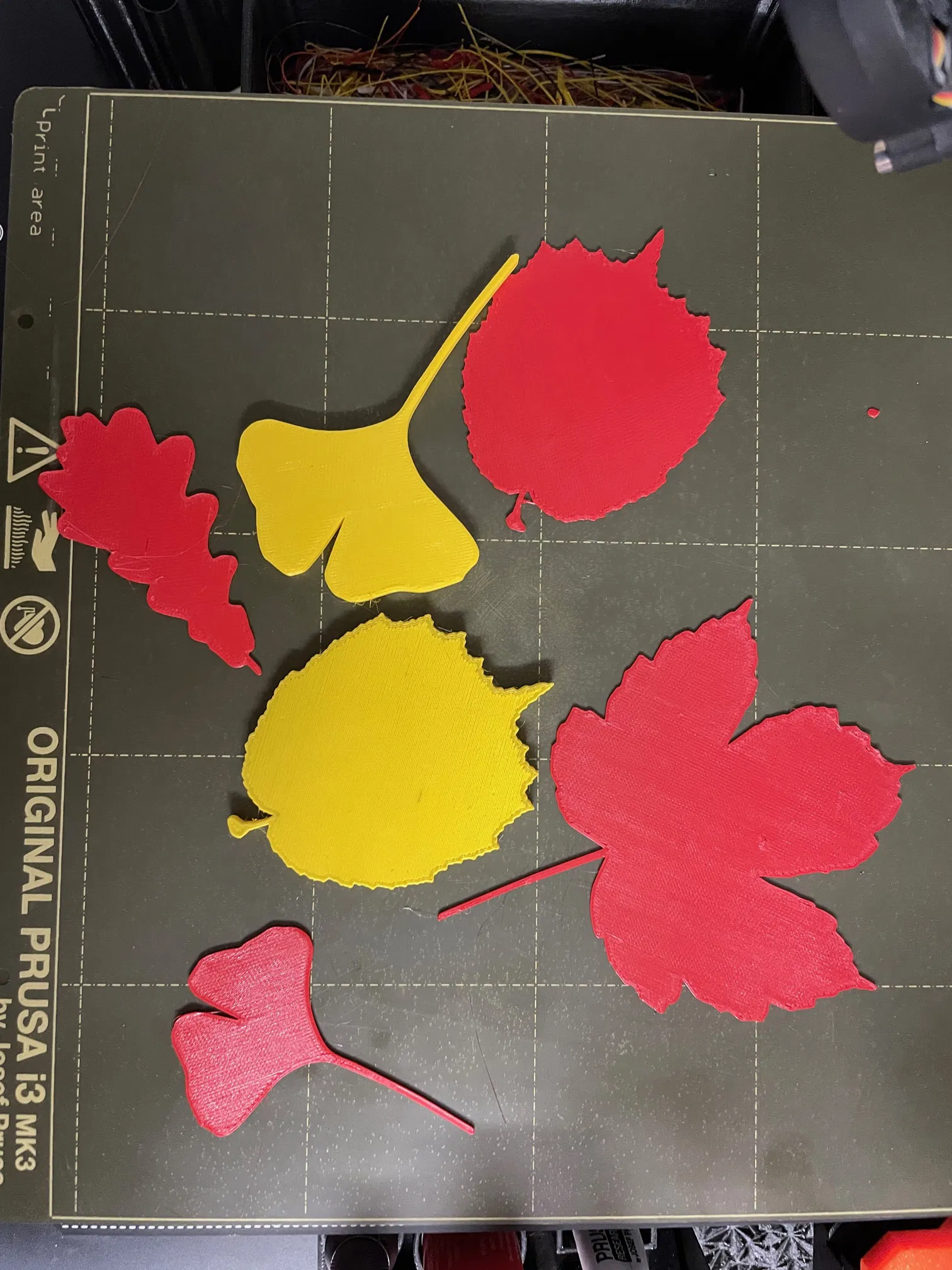 Anh em chỉnh kích thước bằng PrusaSlicer nha. Nhiều khi anh em cần lá với kích thước khác. Trong slicer, anh em chỉnh tỉ lệ x, y sao cho phù hợp, rồi chỉnh riêng chiều cao z. Cái này thiết kế là 1mm chiều cao.