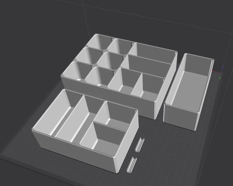 Organizer lớn này dùng để chứa các loại gói tiêu chuẩn và chai lọ đường kính 54mm. Có nhiều phiên bản và phụ kiện nối hộp, cho phép tùy chỉnh kích thước. Hộp chắc chắn, in hơi lâu nhưng đáng giá.