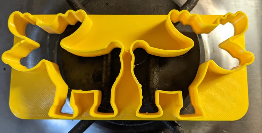 Tụi mình ai cũng thích sản xuất bồi đắp (hay còn gọi là in 3D) vì nó tạo ra rất ít rác thải. Nhưng biết nói sao giờ. Ít ra còn có một quy trình trừ bớt, nơi mà rác thải có thể được xử lý thêm. Bột bánh quy + khuôn cắt bánh quy ;-) Để có được chi tiết khi nướng, bạn cần một loại bột ít chảy và cán mỏng nhất có thể. Hình ảnh cho thấy những nỗ lực đầu tiên của tôi. Nhưng ngay cả khi có gì đó không ổn, bạn vẫn có thể dễ dàng thấy được nó đáng lẽ phải như thế nào. Con nai sừng tấm này dài khoảng 62mm. Nếu bạn thích món đồ nhỏ xinh này, bạn có thể xem thêm: * https://www.f3d.vn/profile/wilko_3373 Disclaimer: Ngay cả khi một số loại sợi nhựa an toàn cho thực phẩm, quy trình in 3D thì không. Đây là một hướng dẫn nhỏ từ Prusa về cách giải quyết vấn đề: Tôi sử dụng PETG mà tôi làm sạch trong bể sous vide ở nhiệt độ hơi cao hơn 70°C để giảm nguy cơ vi trùng và vi khuẩn. Điều hợp lý nhất là chỉ sử dụng khuôn trong một mùa hoặc làm theo hướng dẫn của Prusa để xử lý bản in. ### Hướng dẫn in ### Cài đặt in Thương hiệu máy in: Prusa Máy in: i3 MK3