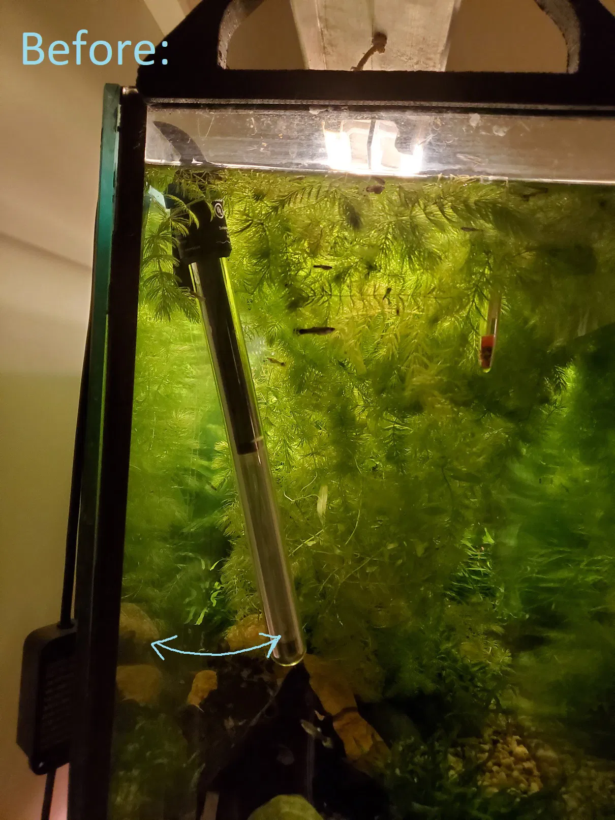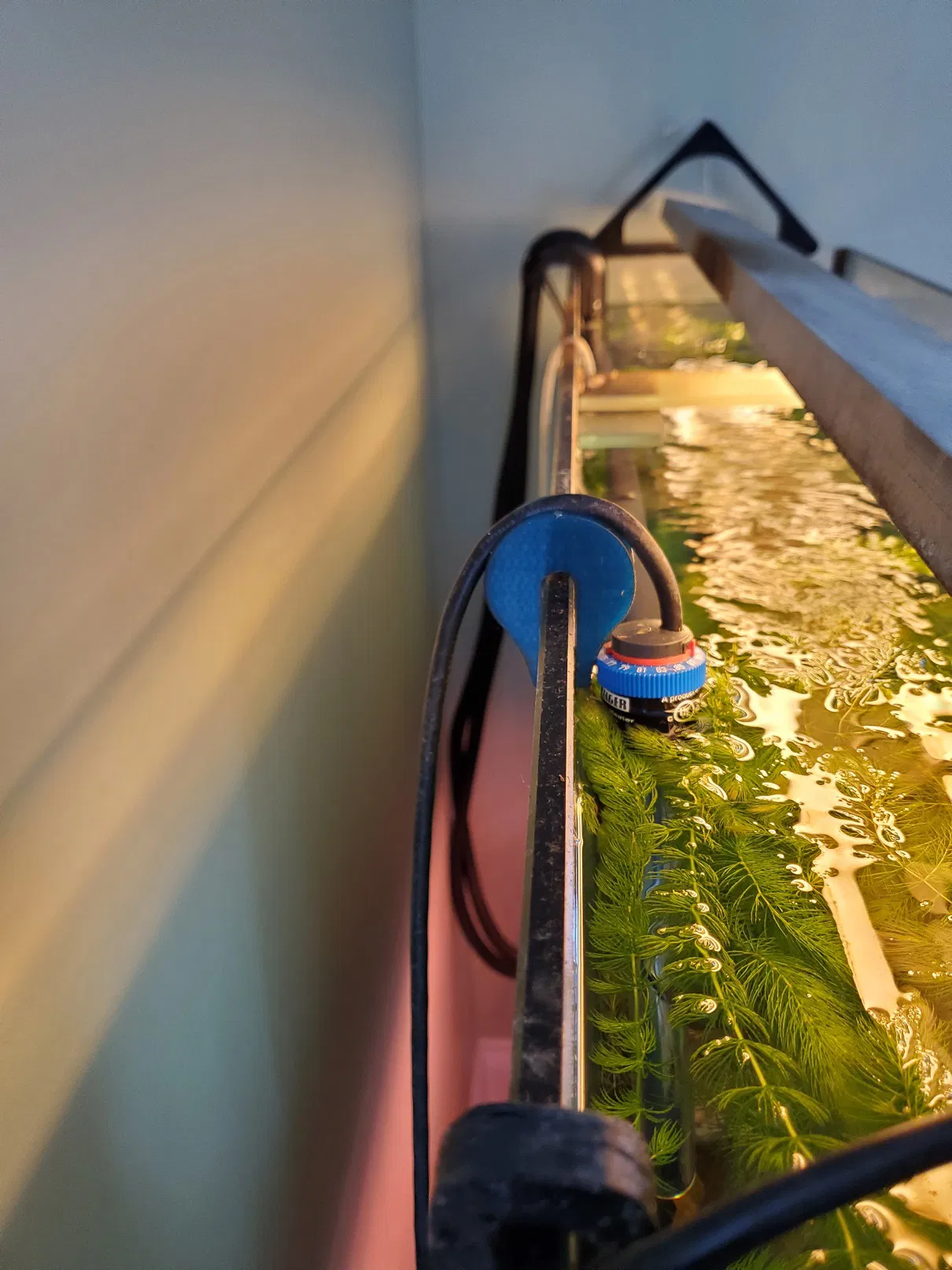 Cái máy sưởi Eheim của tui á, nó cứ hay bị nổi lềnh bềnh ra giữa hồ hoài do cái dây cáp nó cứng quá. Cái gá này làm cho cái dây cáp nó đi theo đường cong của cái gá luôn, để cái máy sưởi nó đứng thẳng và nằm gọn gàng, không có bị vướng víu.