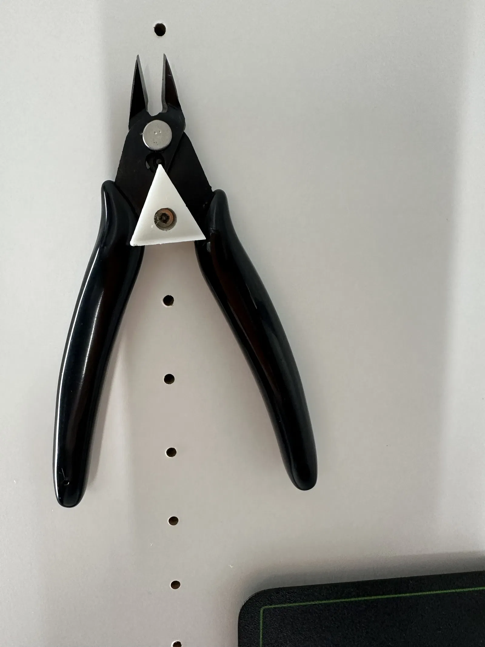 Một mẫu đơn giản để giữ một cặp kìm cắt filament. Bạn sẽ cần một con ốc nhỏ.