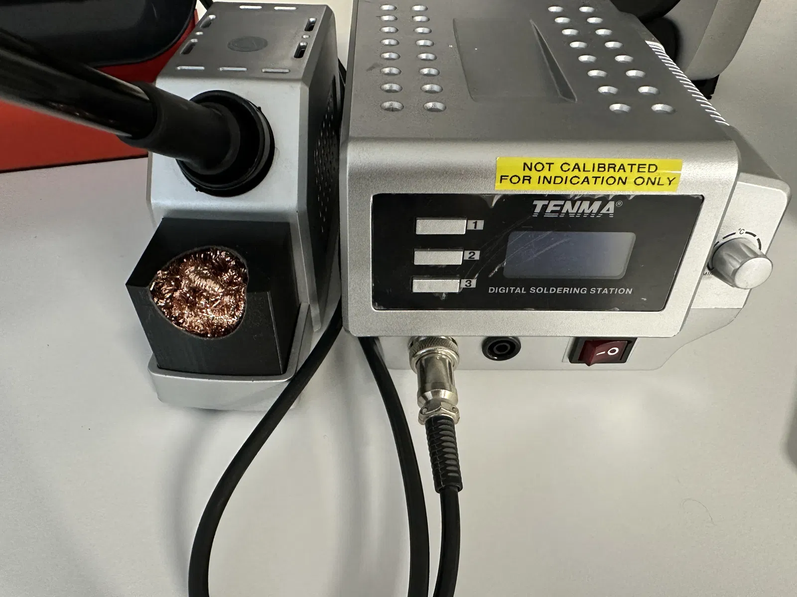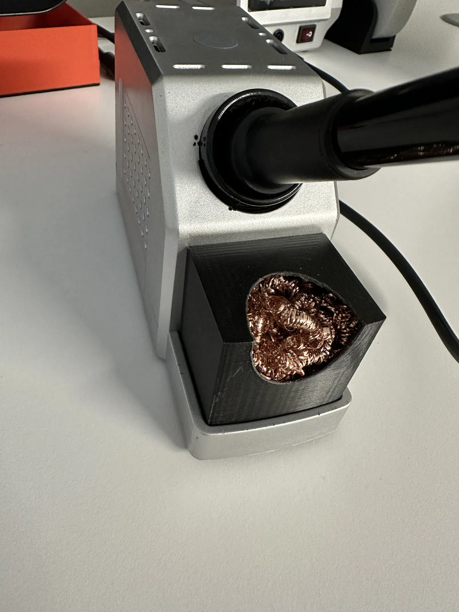 Thay khay mút bằng gác đầu khò bằng đồng cho mỏ hàn Tenma. Dễ dàng tìm mua phụ kiện này trên các sàn thương mại điện tử. Nên in bằng support hữu cơ để dễ dàng tháo gỡ.