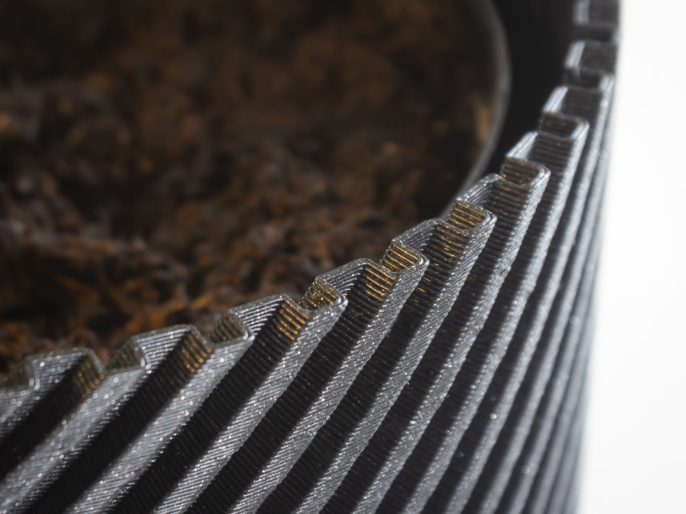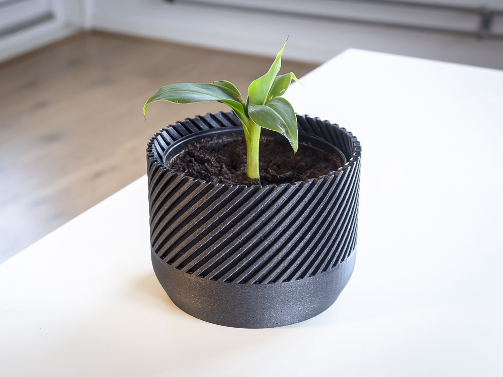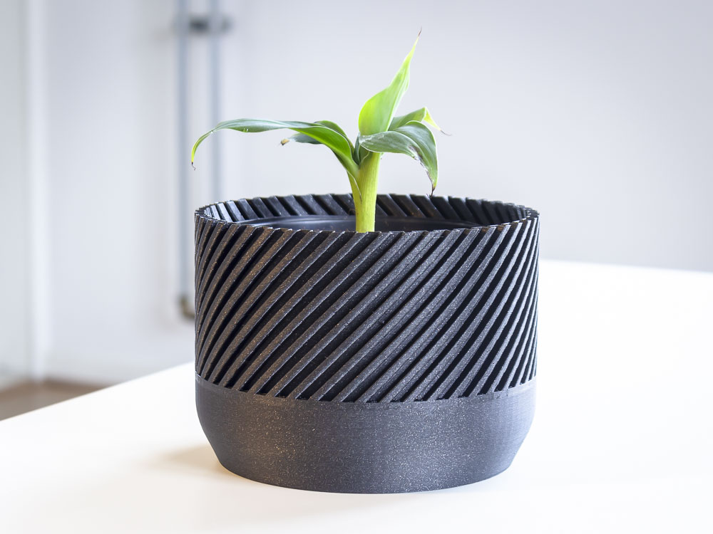 Chậu cây hiện đại hình xoắn ốc. Mình in mẫu này với độ cao lớp là 0.4 mm, thành chậu là một lớp duy nhất. Đây là một thử nghiệm nhỏ tốn khoảng 3.5 tiếng để in. Mình chắc là máy in hiện đại làm được nhanh hơn nhiều.