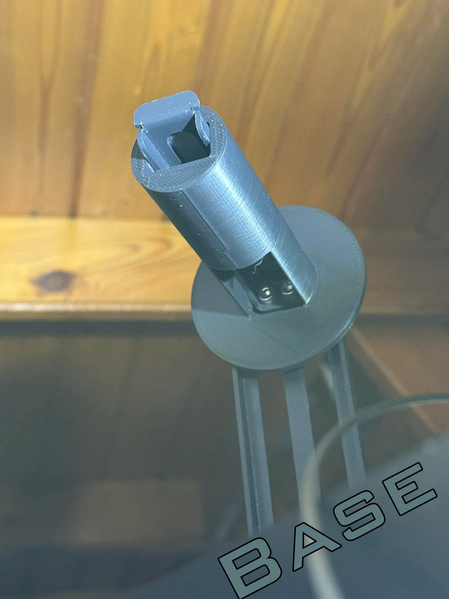 Tháo ốc cái đế giữ dây in trên đỉnh ra, rồi gắn cái mẫu "Base" vô. Tui có khoét lỗ sẵn để dễ dàng siết ốc bằng lục giác của nhà sản xuất.