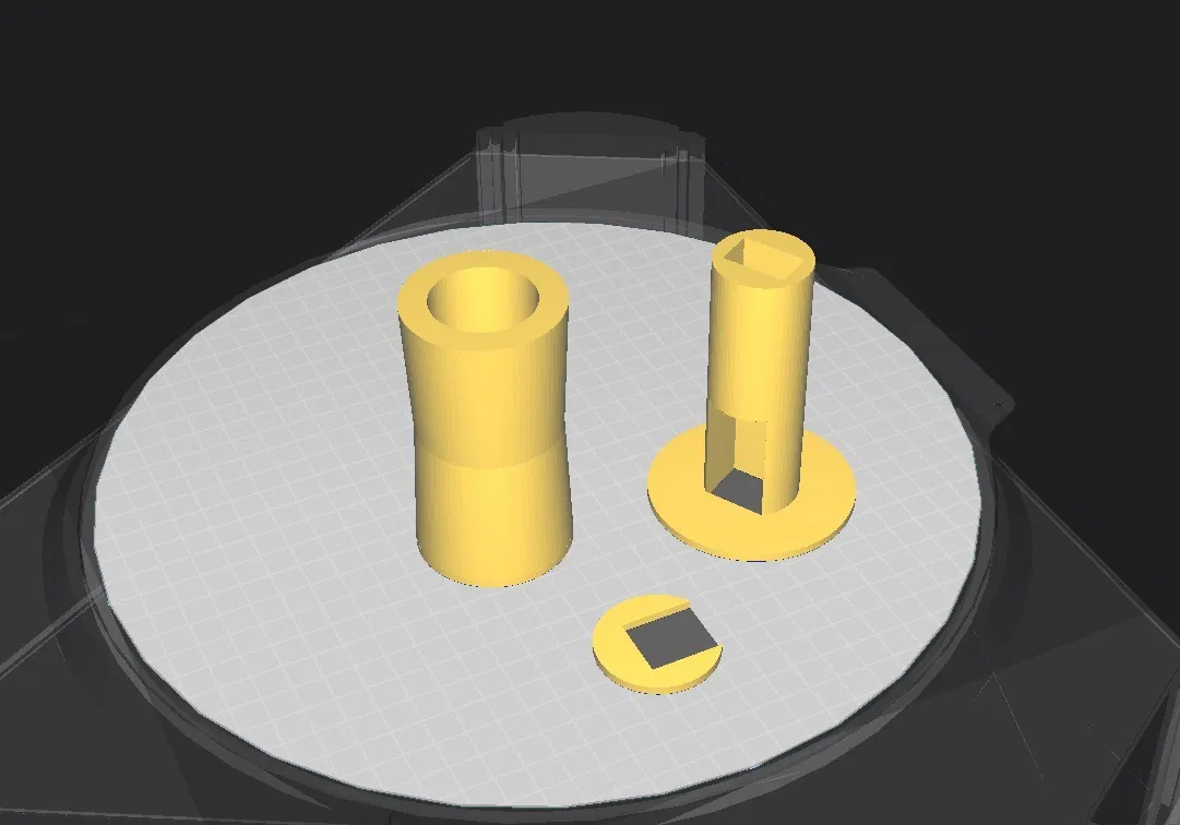 Để in phần đế mà không cần dùng support, hãy in úp mặt xuống như hình trong Cura.