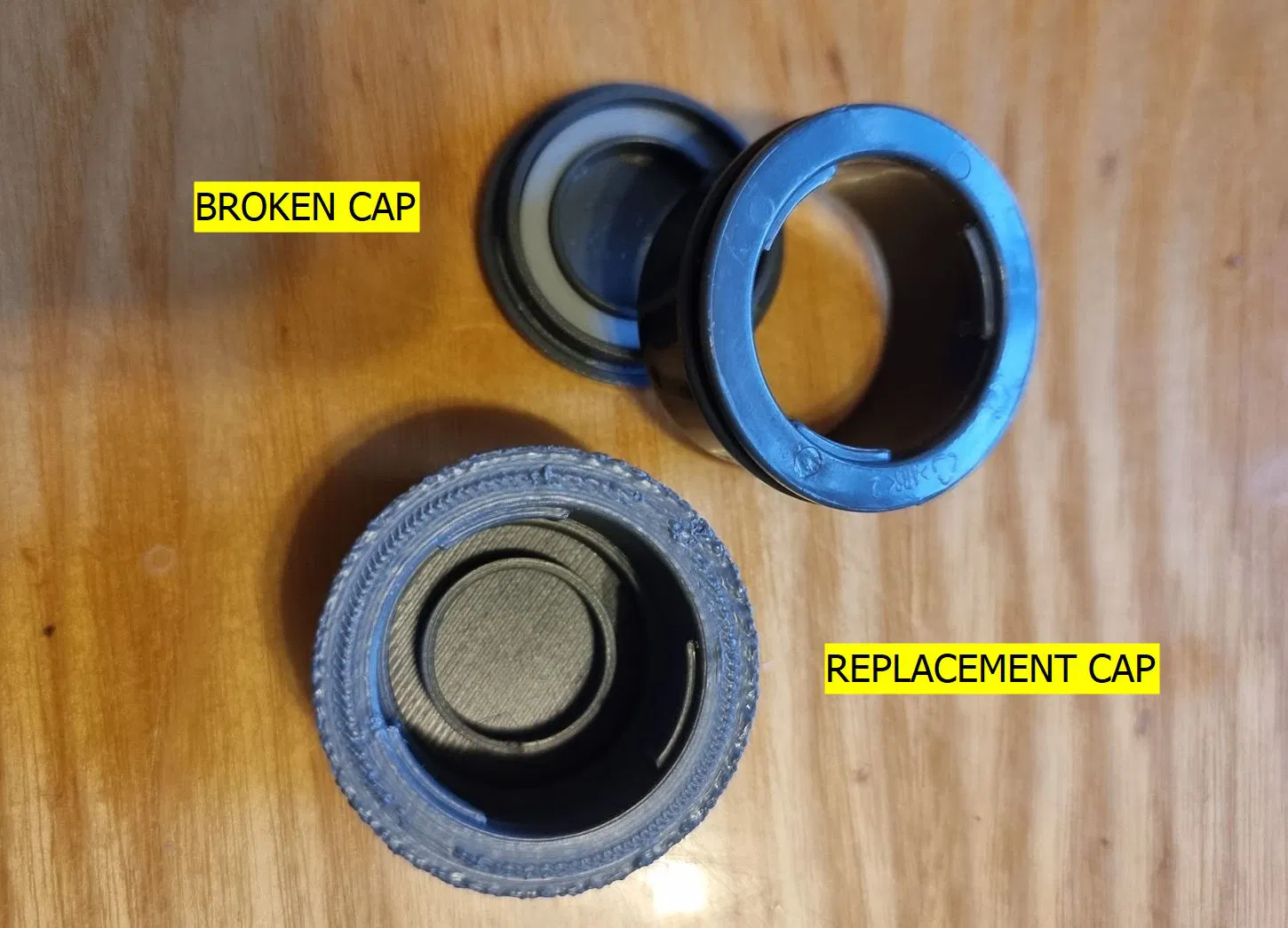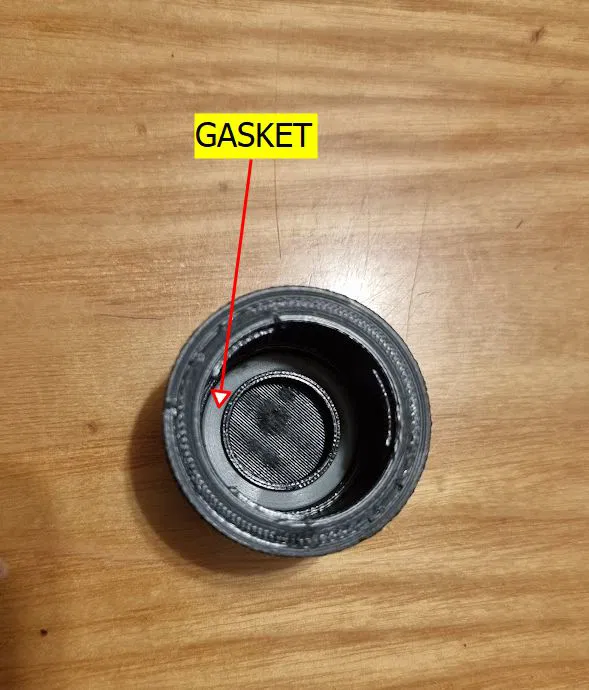 Bạn có thể dùng ron (gioăng) từ nắp cũ. Nếu bị mất, bạn có thể in một cái thay thế bằng TPE hoặc TPU, hoặc sử dụng bất kỳ ron nào có kích thước 25mm x 18.6mm x 2.4mm (đường kính ngoài x đường kính trong x chiều cao). Tôi đã đính kèm mô hình ron.