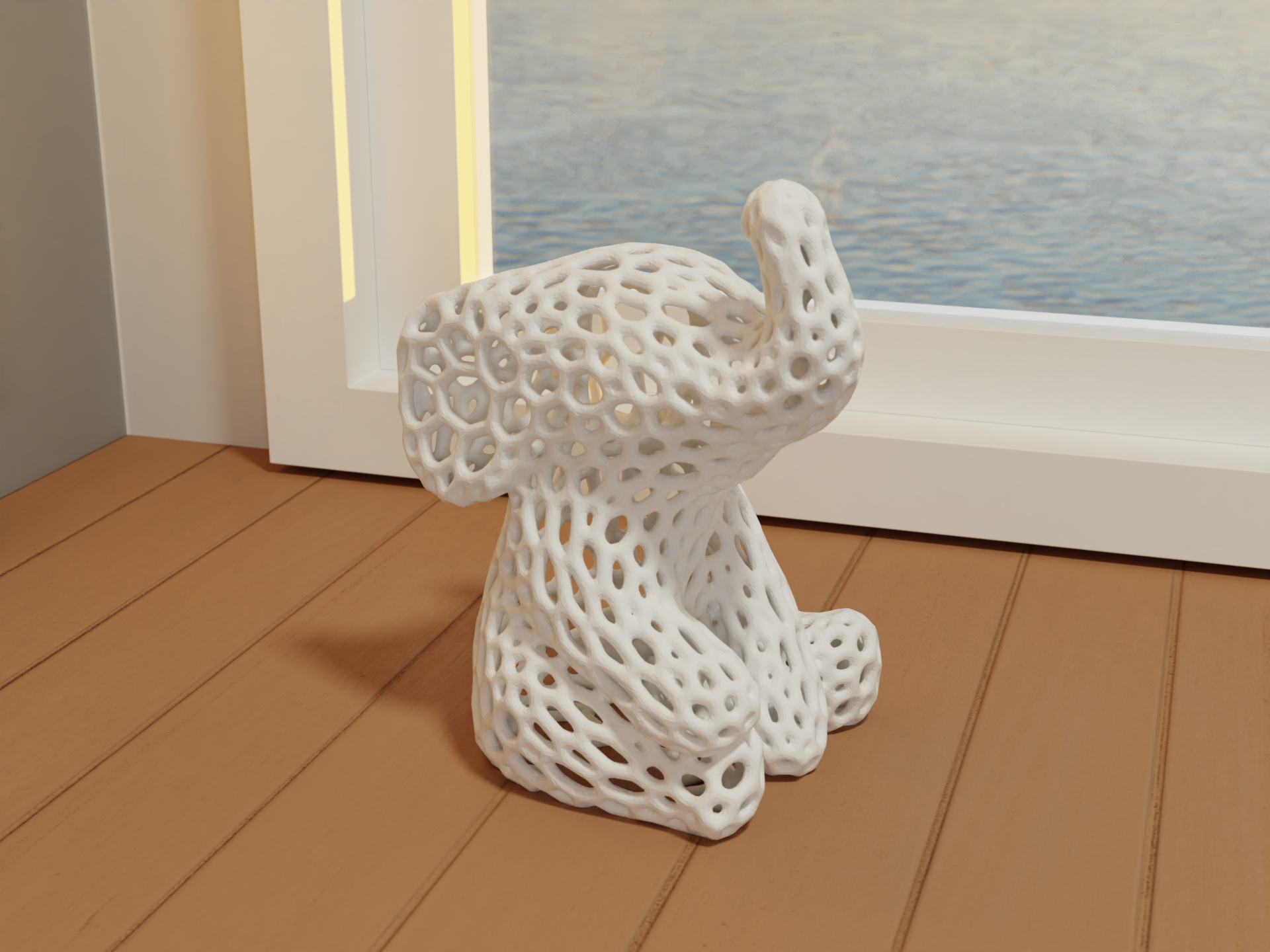 - Chú voi được tạo hình bằng họa tiết Voronoi đầy mê hoặc, tạo hiệu ứng như một mạng lưới.