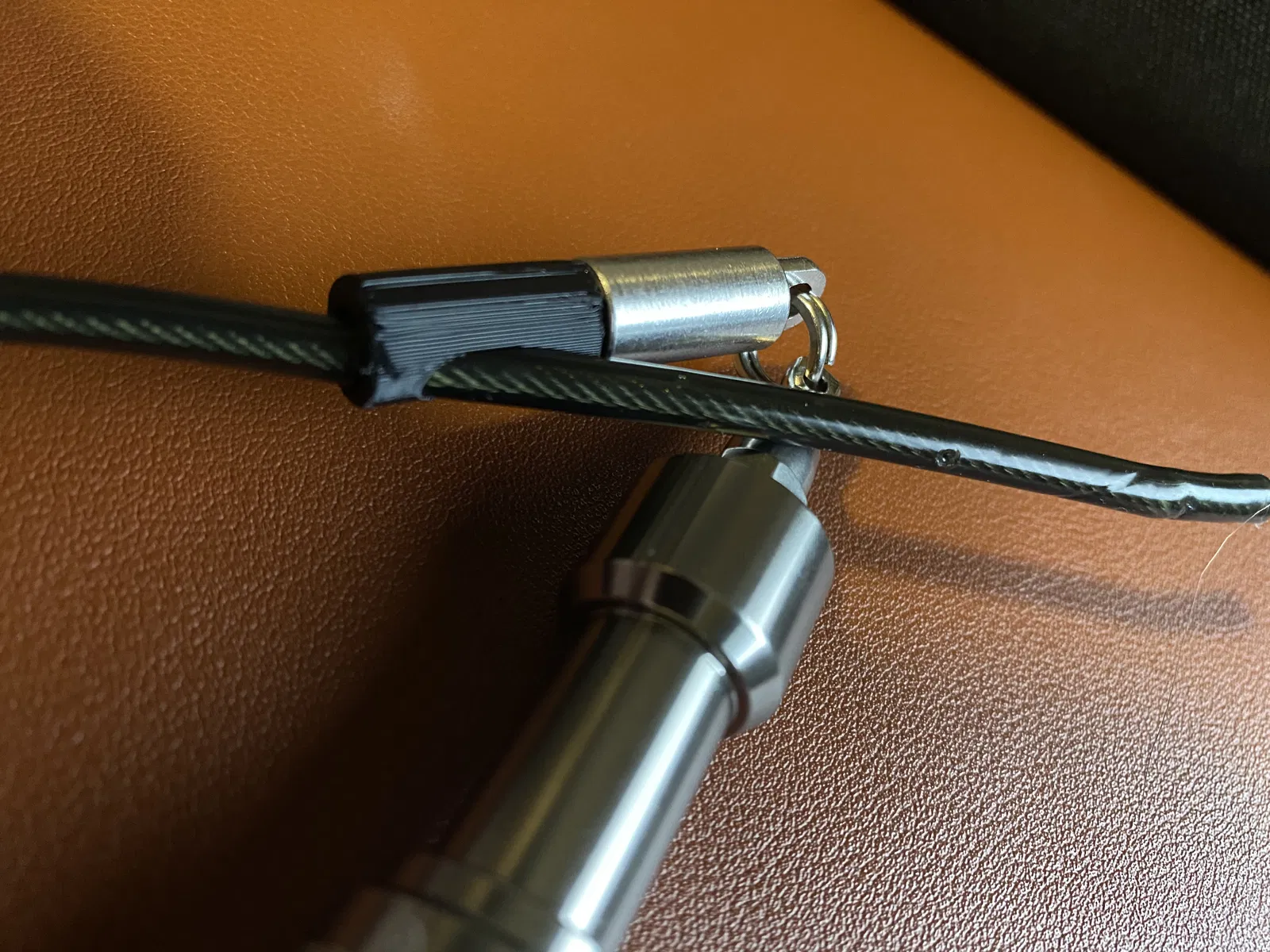 Sau khi mà anh em chỉnh được độ dài dây dây ưng ý rồi đó, thì cứ việc đánh dấu sợi dây ngay chỗ cái cục gắn dây thiệt nó bắt đầu (ngay sau mấy cái khoen và khớp xoay á) rồi cắt một phát duy nhất bằng kềm cộng lực là xong. Anh em gắn dây kiểu bình thường là xài được rồi.