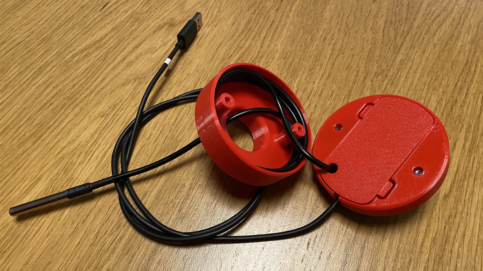 - phiên bản M4 dành cho ốc ren M4, ví dụ CNC Kitchen (dài/ngắn), lỗ đường kính 5,6mm. Cài đặt in của tui: Chất liệu: Prusament PETG Đường kính đầu phun: 0.4mm Chiều cao lớp: 0.2mm Độ đặc ruột: 100% Giá đỡ: Có Chất liệu dùng: 32g Thời gian in: khoảng 2:45h ##### Bản phối lại Giá đỡ D1: Thiết kế cho phiên bản Wemos/LOLIN D1 mini V4 (USB-C). Tui đề xuất bắt vít PCB - nên có chuẩn bị để khoan lỗ tùy theo ý bạn. Dây cảm biến có lối ra phía sau. Bạn có thể lắp Wemos sau khi hàn cảm biến, có lỗ 7mm - đủ cho đầu dò Dallas. Thử dùng cáp USB-C loại mỏng. Cài đặt in của tui: Chất liệu: Prusament PETG Đường kính đầu phun: 0.4mm Chiều cao lớp: 0.2mm Độ đặc ruột: 25% Gyroid Giá đỡ: Không Chất liệu dùng: 14g Thời gian in: khoảng 1:15h ##### Bản phối lại Nắp: Rãnh cảm biến đã được loại bỏ khỏi mẫu gốc. Cài đặt in của tui: Chất liệu: Prusament PETG Đường kính đầu phun: 0.4mm Chiều cao lớp: 0.2mm Độ đặc ruột: 15% Gyroid Giá đỡ: Không Chất liệu dùng: 18g Thời gian in: khoảng 1:30h