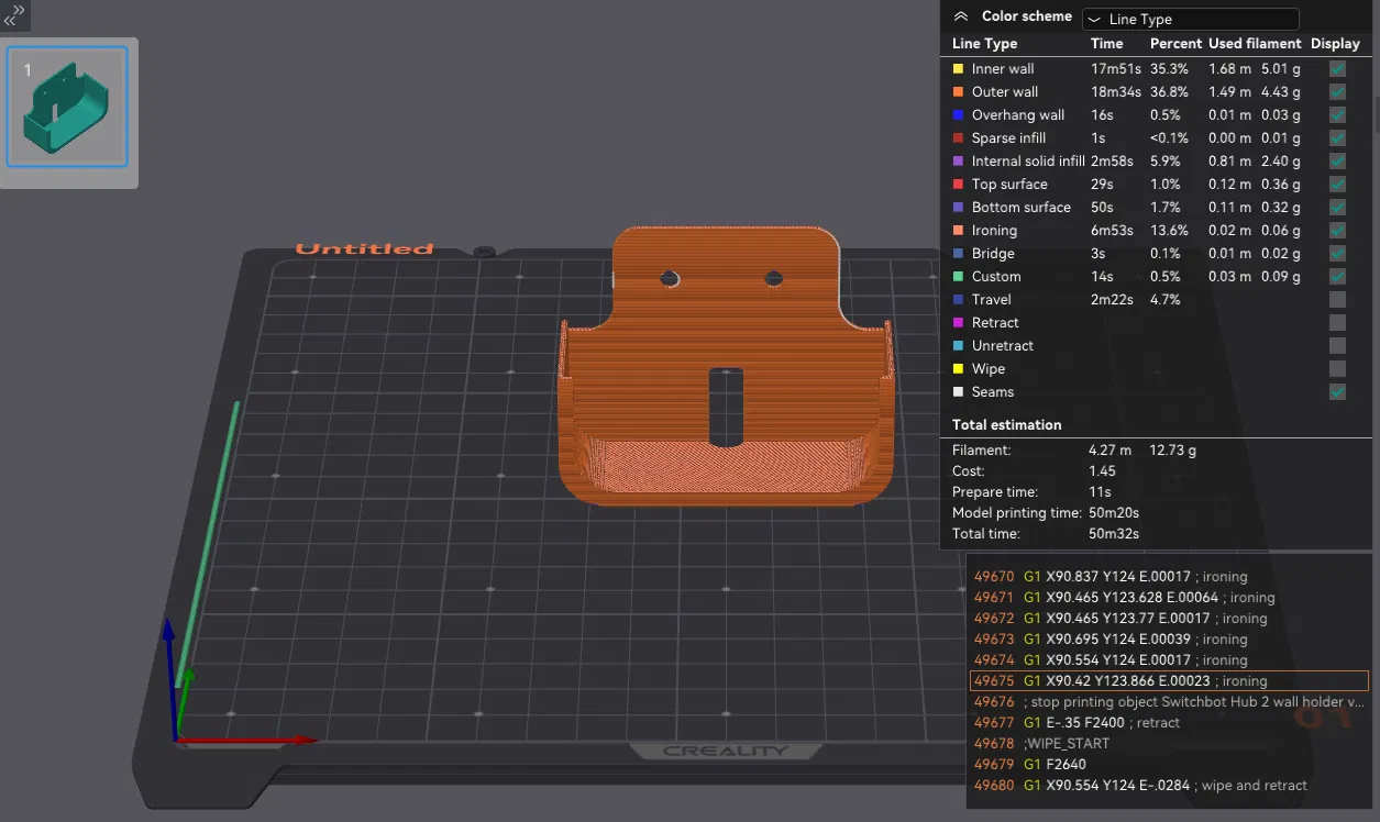 Kệ treo tường đơn giản cho Switchbot Hub 2. In không cần support, chỉ cần 2 con ốc hoặc đinh là xong. Phiên bản mới có cải tiến cho ốc tròn.