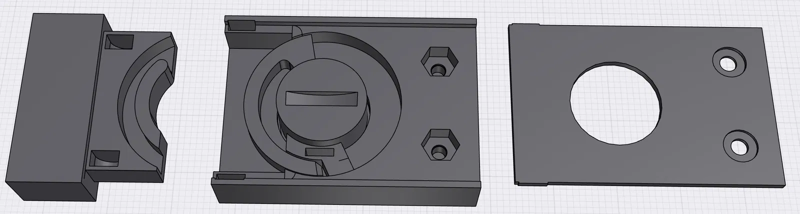 Hai bộ phận chính (latch_body.3mf và latch_2.3mf) cũng có chỗ cho nam châm tròn 4x1mm để giữ chúng lại với nhau và tạo cảm giác cũng như âm thanh.