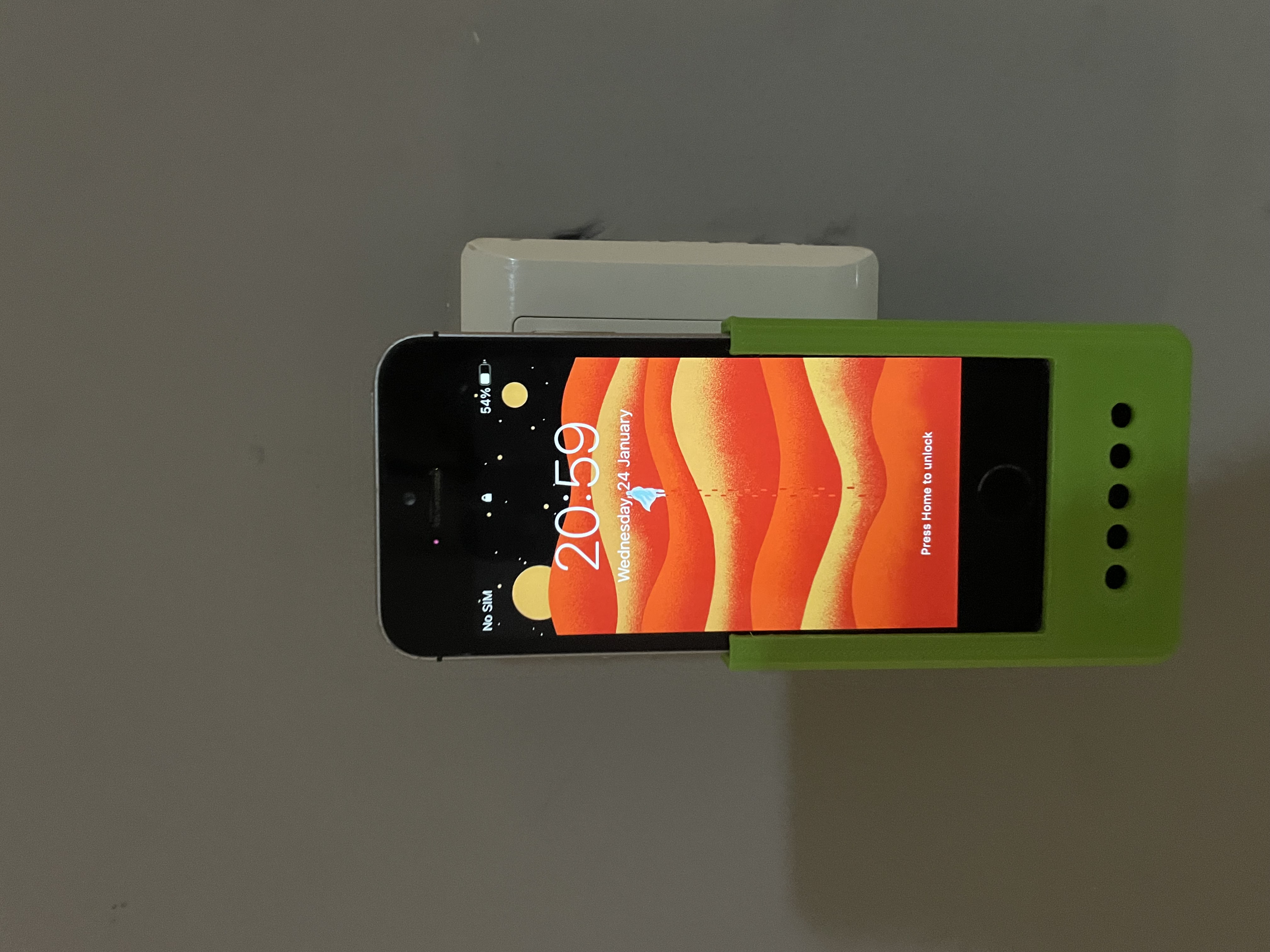 Dễ dàng treo và sạc iPhone SE Gen 1 trên tường – không cần ốc vít! Giá treo này có chỗ cắm sạc tích hợp, giúp bạn quản lý dây cáp gọn gàng và cố định điện thoại trên tường.