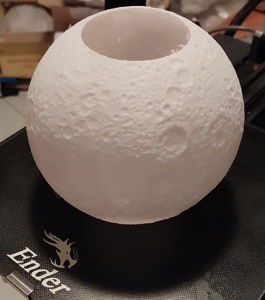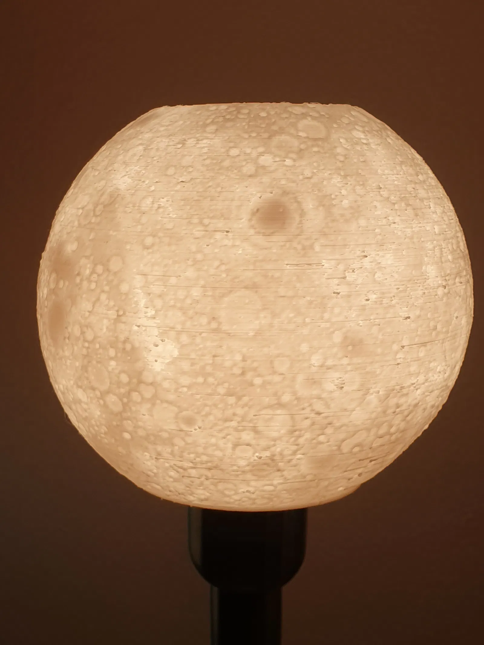 Đáy phẳng, đỉnh mở, lỗ 29mm. Phiên bản đèn mặt trăng này được tối ưu hóa để in dễ dàng hơn với đáy phẳng và đỉnh mở, giúp tăng cường khả năng làm mát. Lỗ 29mm cho phép lắp vào đui đèn tiêu chuẩn.