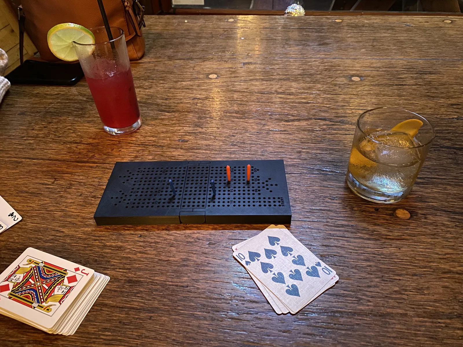 Bàn cờ cribbage gấp gọn, in không cần hỗ trợ, có ngăn chứa bộ bài và chốt. Nam châm giúp giữ bàn cờ đóng lại, hoặc bạn có thể dùng dây thun. Có hai mẫu, một có nam châm và một không. Đã cập nhật thêm chốt phẳng.