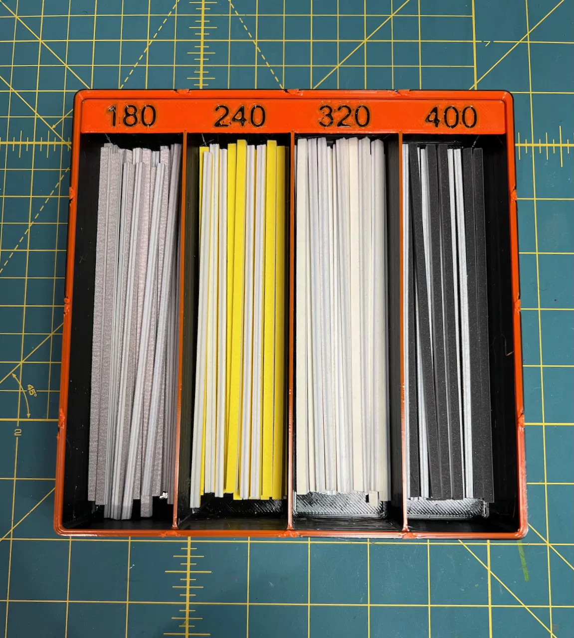 Đây là khay Gridfinity kích thước 4x4, được thiết kế đặc biệt để đựng các loại nhíp chà nhám với 4 độ nhám khác nhau. Giúp bạn sắp xếp gọn gàng và dễ dàng truy cập các dụng cụ chà nhám của mình.