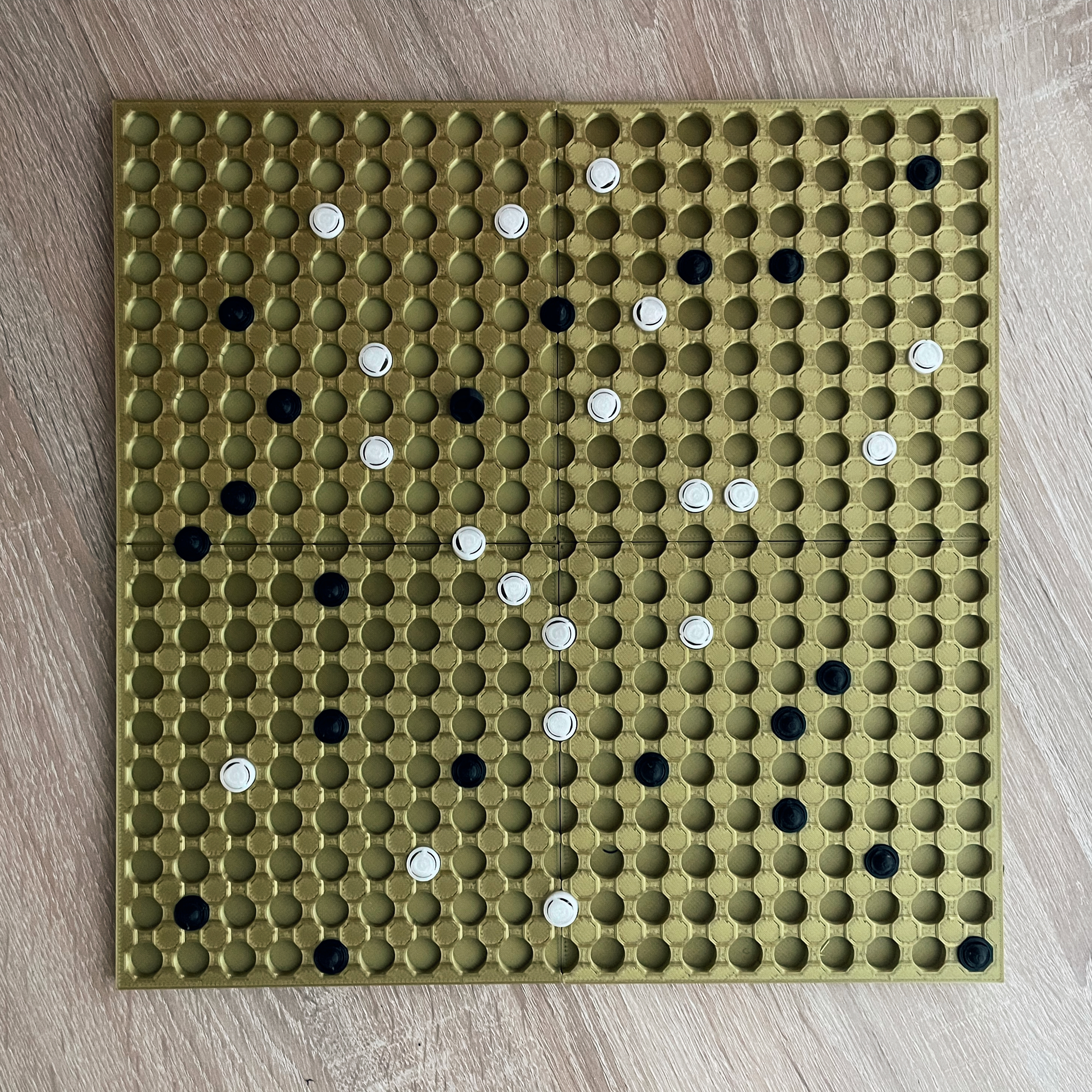 Bàn cờ vây (Go / Weiqi) phiên bản đặc biệt dành cho người mù, có lỗ giữ quân và phân biệt quân đen. Bộ đầy đủ gồm 4 mảnh bàn cờ và 360 quân. In bằng PLA, không cần support. Lưu ý căn chỉnh Z-offset và bệ in sạch để có kết quả tốt nhất.