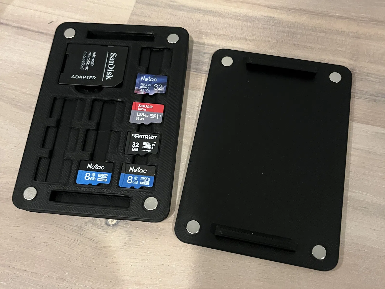 Tui làm cái hộp này để nó gọn gàng, nhét vô túi máy ảnh là vừa luôn. Hộp đựng được 11 thẻ Micro SD, 1 thẻ SD, xài nam châm 6x2mm hoặc 6x3mm. Kích thước 100 x 70 x 11mm, có file STEP sẵn, in không cần support.
