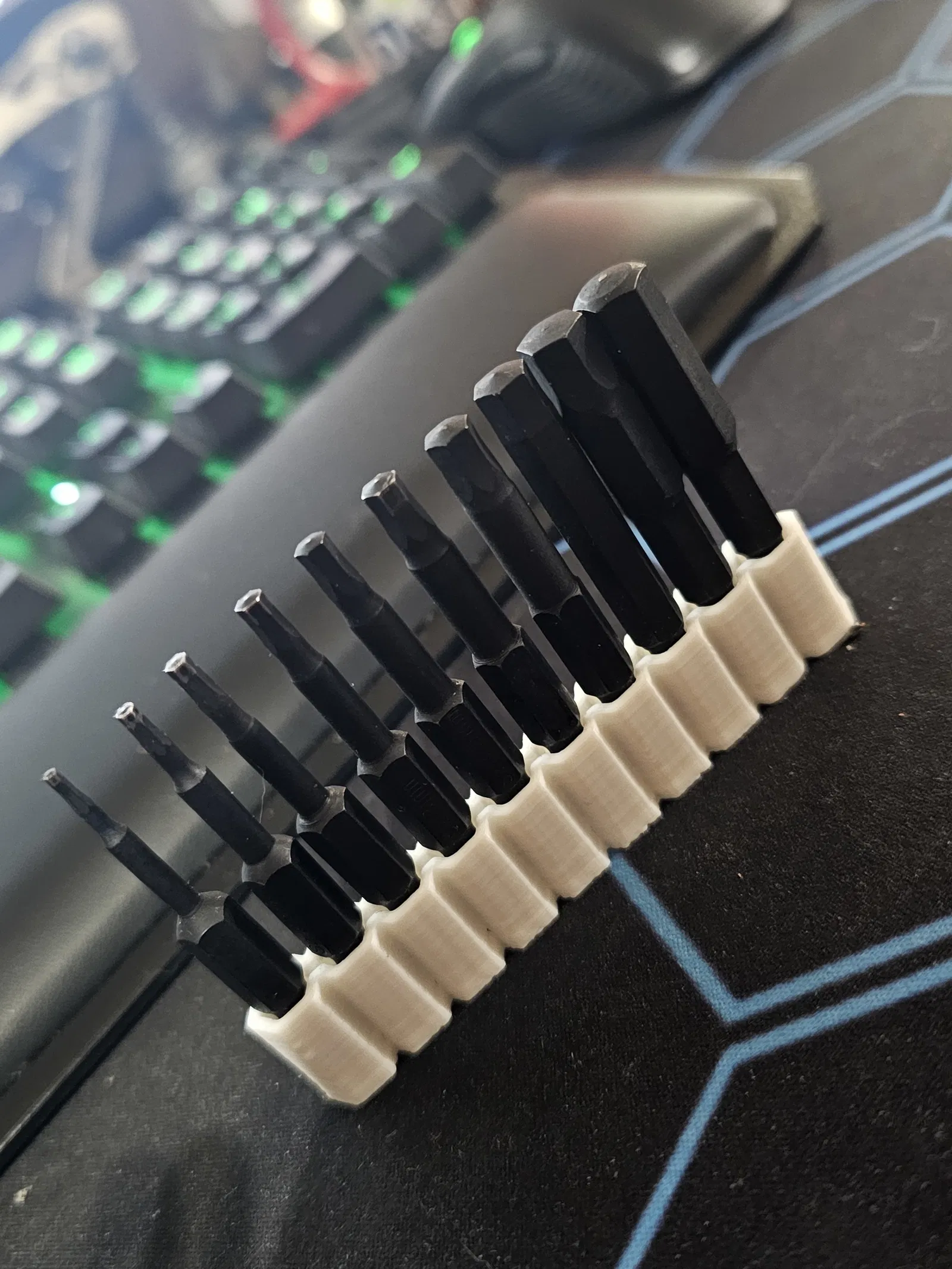 Thiết kế lại hoàn toàn dựa trên bản gốc, bổ sung thêm nam châm 6x3. Đây là một phụ kiện hữu ích cho bộ dụng cụ của bạn, giúp giữ các mũi khoan một cách gọn gàng và dễ tìm.