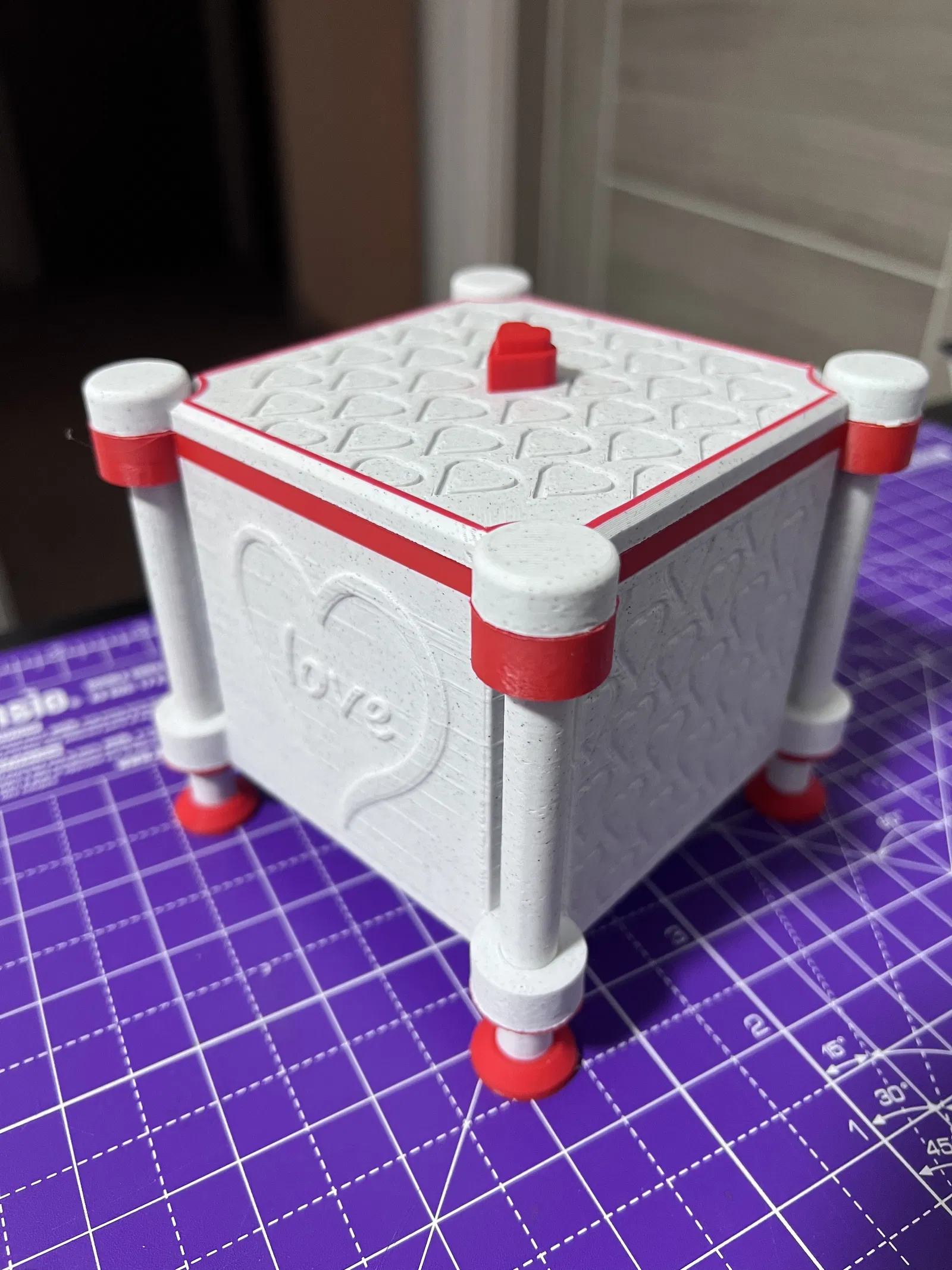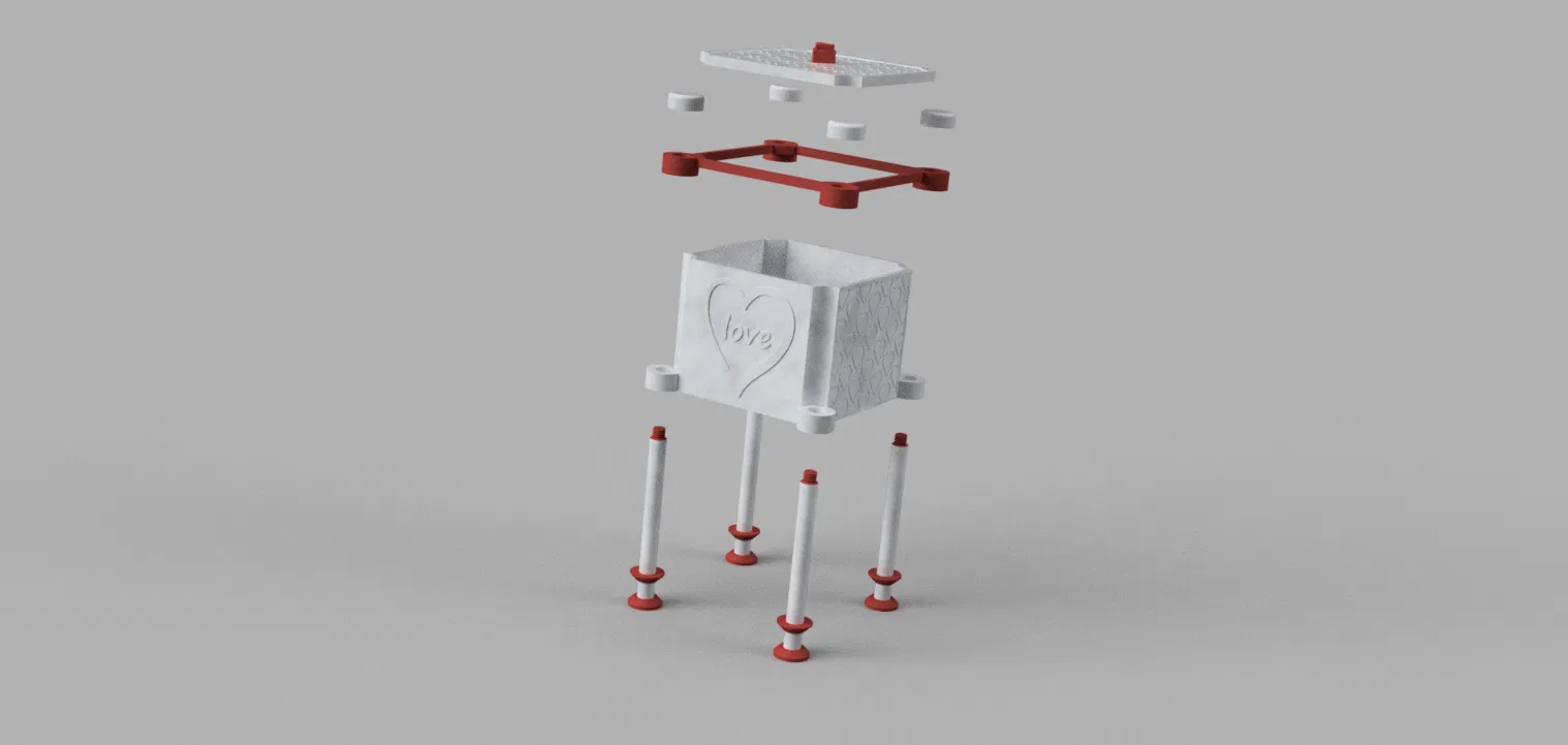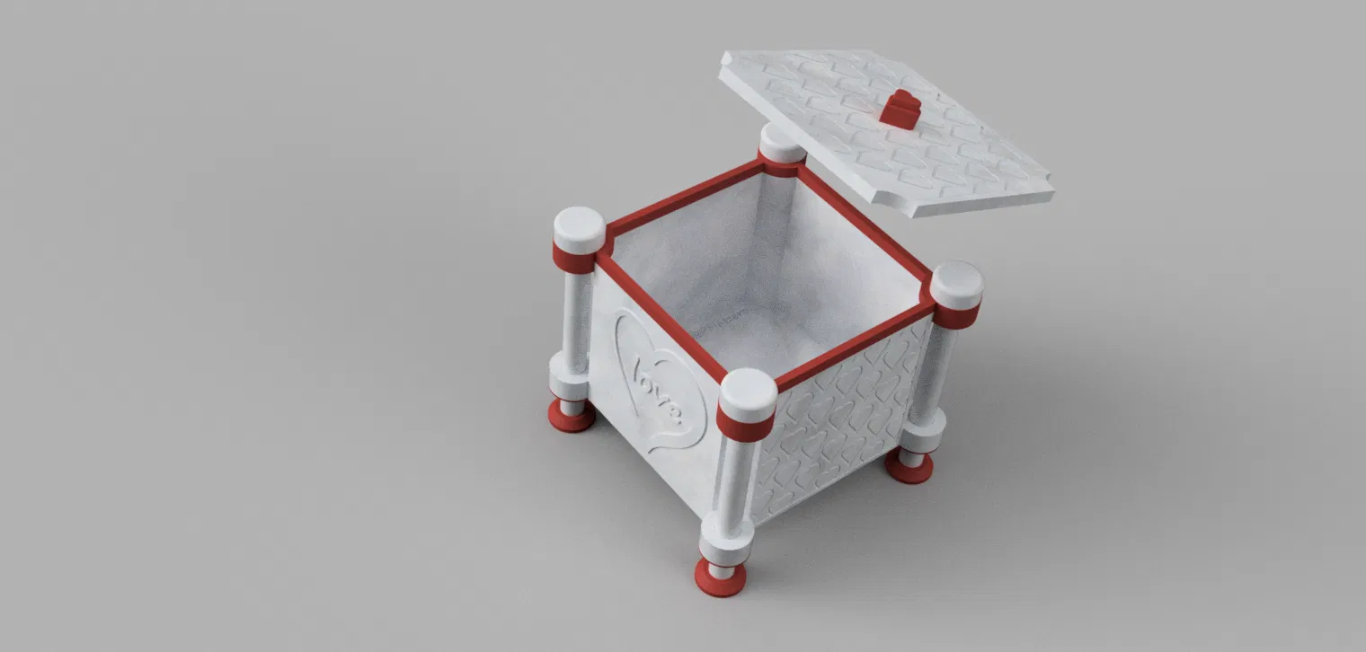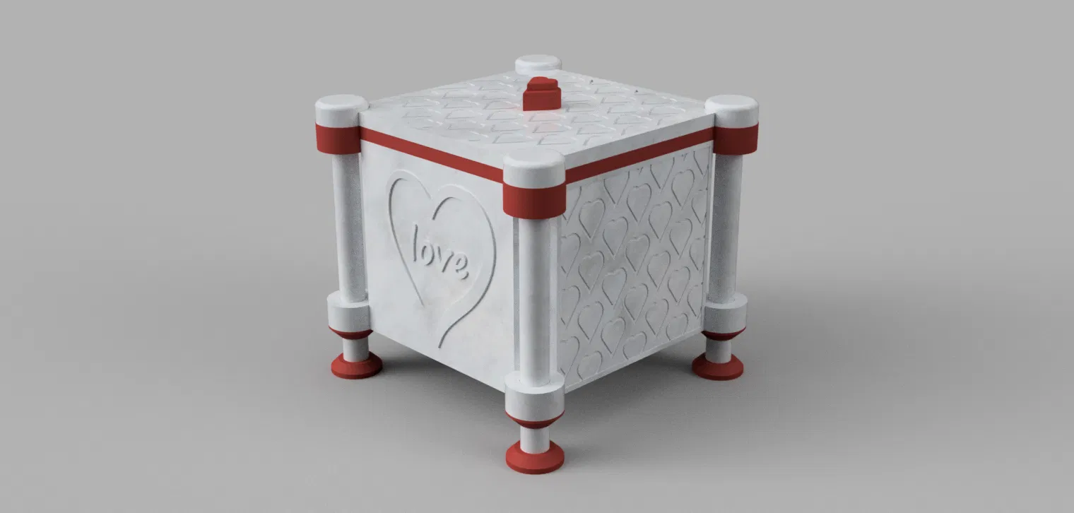 Chiếc hộp thiết kế độc đáo cho Ngày Valentine, dùng làm hộp quà hoặc hộp trang trí. Kích thước bên trong 92 mm x 92mm x 75mm. Mô hình in không cần hỗ trợ, các bộ phận dễ dàng lắp ghép. Thích hợp làm quà tặng ý nghĩa.