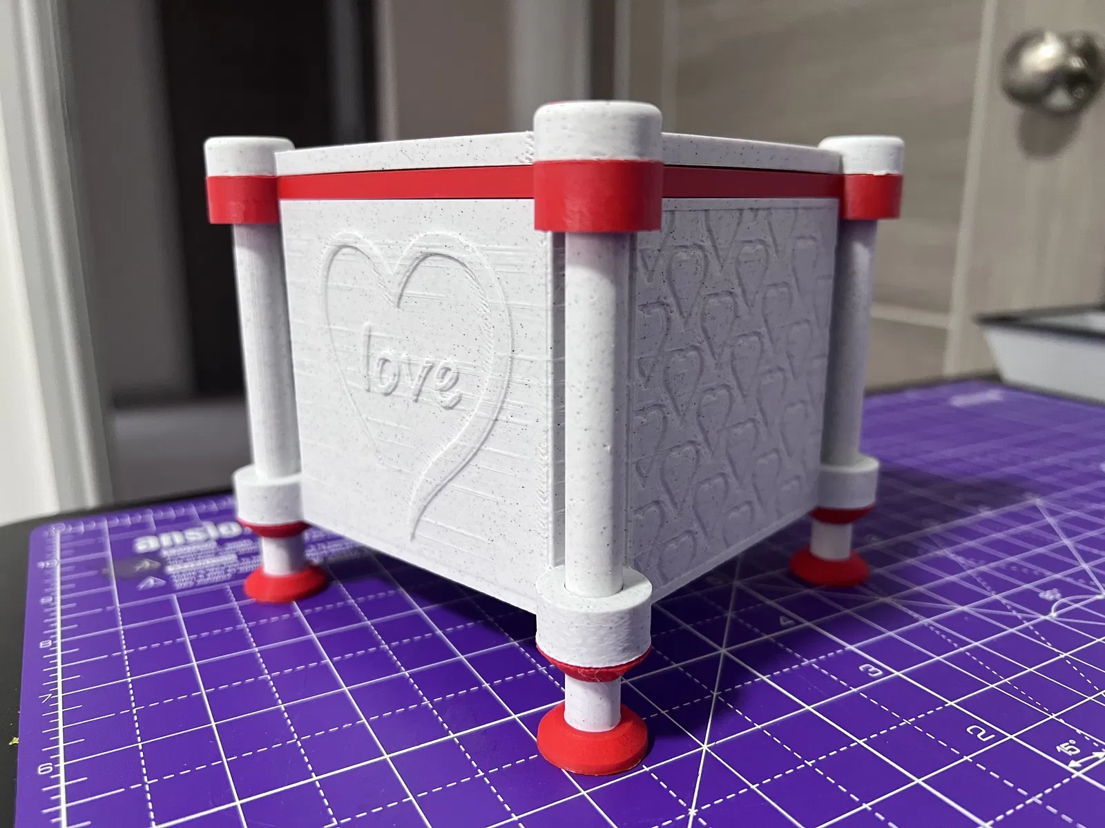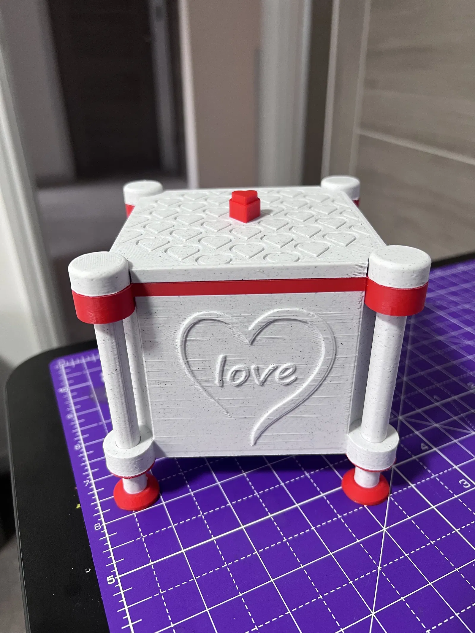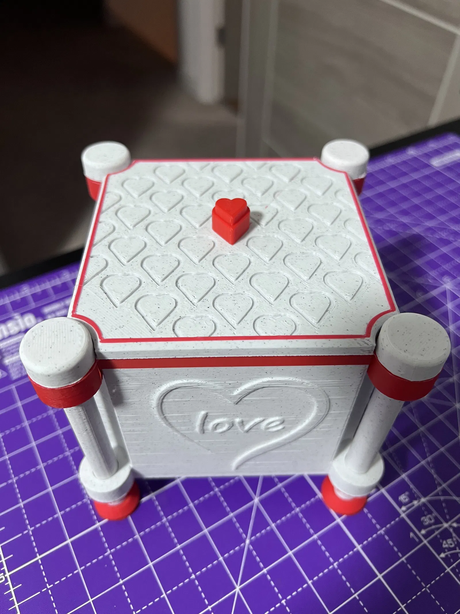 Chiếc hộp thiết kế độc đáo cho Ngày Valentine, dùng làm hộp quà hoặc hộp trang trí. Kích thước bên trong 92 mm x 92mm x 75mm. Mô hình in không cần hỗ trợ, các bộ phận dễ dàng lắp ghép. Thích hợp làm quà tặng ý nghĩa.