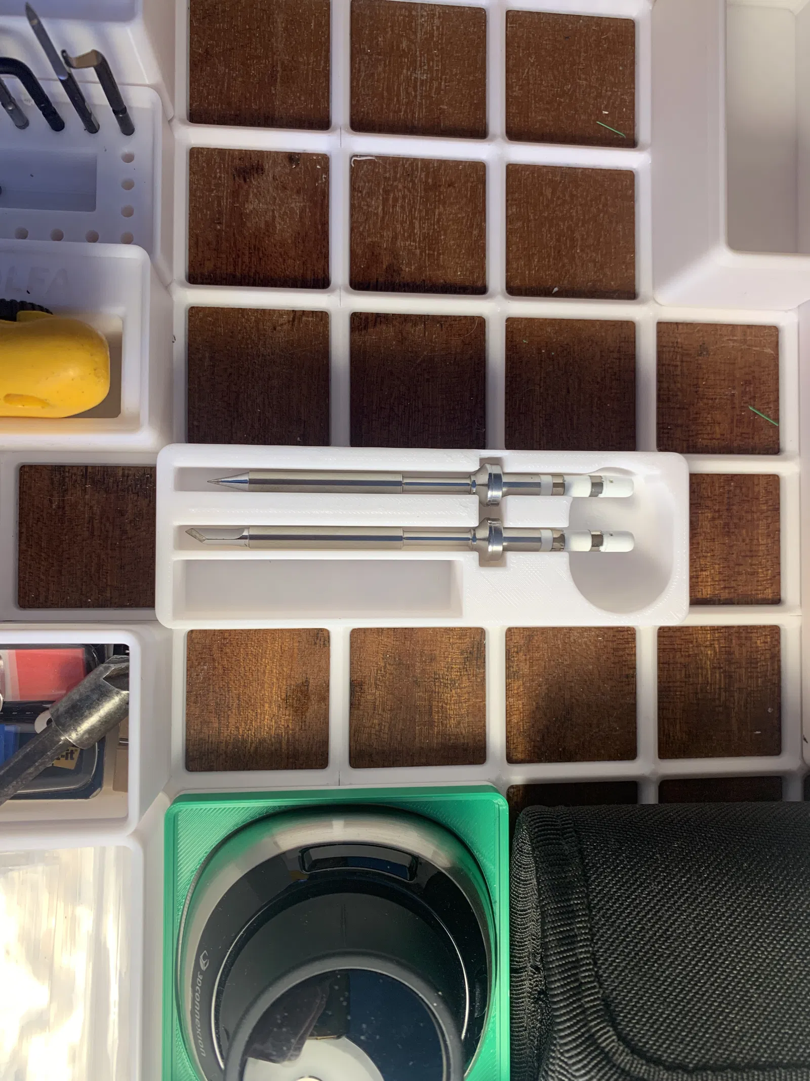 Thêm 2 khe cắm cho mẫu hộp đựng Pinecil & mũi hàn Gridfinity mà tui tìm được và rất thích! Mẫu này giúp bạn có thêm không gian lưu trữ cho các phụ kiện Pinecil của mình một cách gọn gàng.