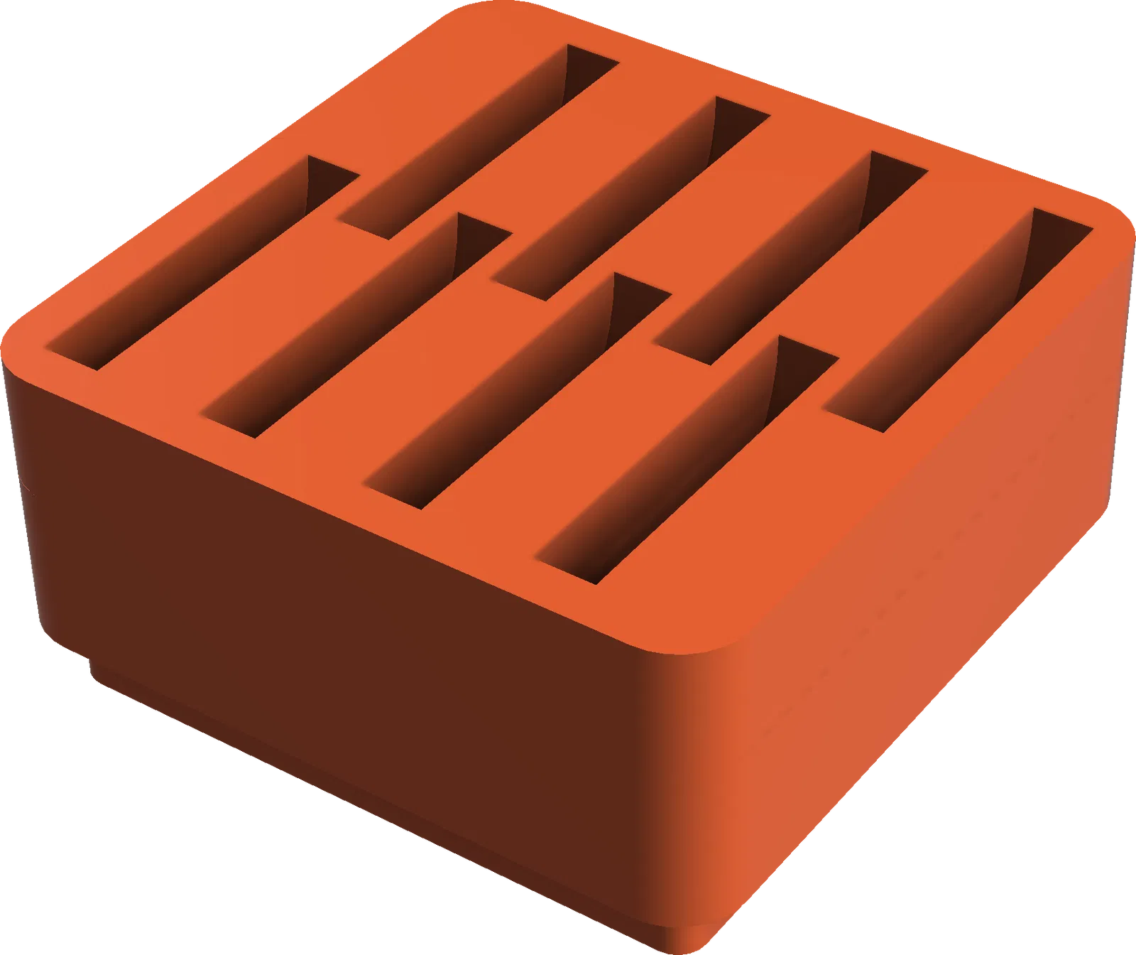 Hộp Gridfinity nhỏ gọn, có thể chứa 8 viên pin CR2032. Đây là phiên bản nâng cấp, được thiết kế đơn giản, không gờ, không nam châm, phù hợp với các khay pin khác cùng chiều cao.