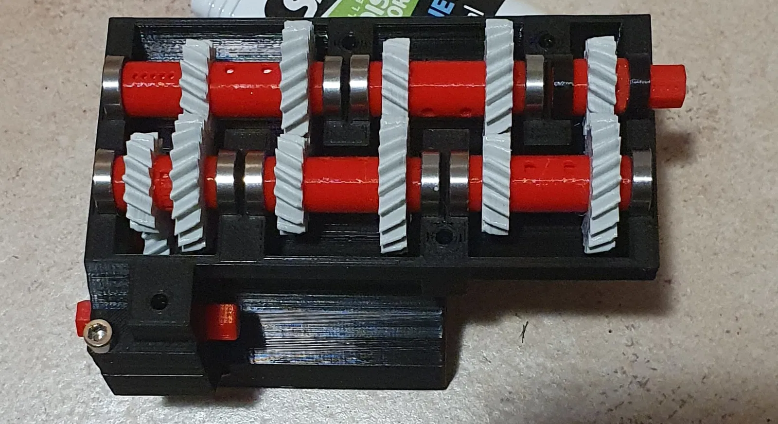 Bạn nên bắt đầu lắp ráp từ trục ra (vỏ L, trục ra và trục 7) sau đó đến vỏ M, tất cả các trục còn lại và cuối cùng là vỏ R. Có 3 vít M3 để lắp vỏ M vào vỏ L và sau đó là 4 vít M3 để lắp vỏ R vào vỏ M. Sử dụng vít ngắn để bạn không vặn vào các bánh răng... ! (Điều này đã xảy ra với mình nên hãy cẩn thận…)