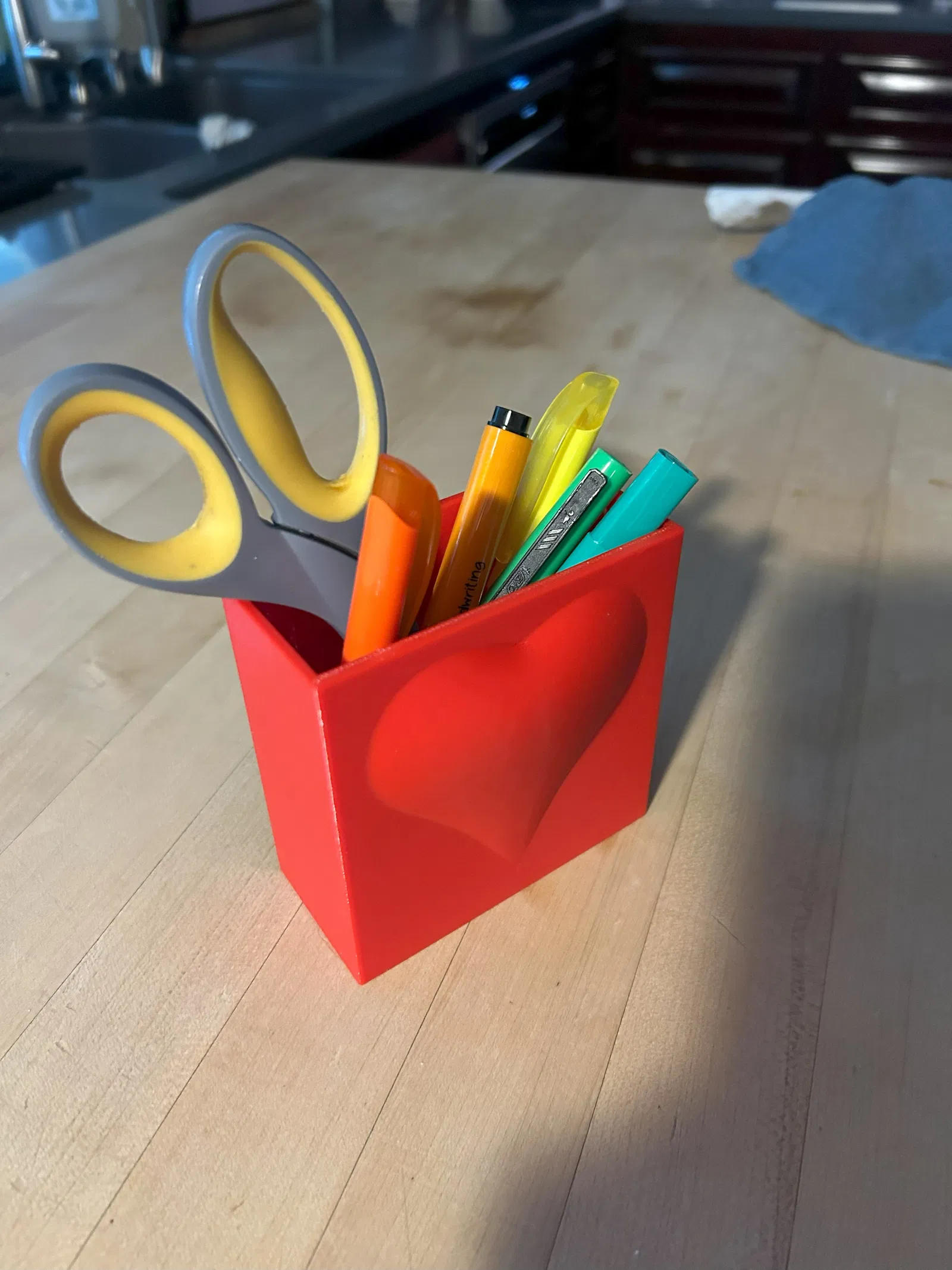 Hộp bút đơn giản có hình trái tim, in dễ dàng (nhưng tốn thời gian)