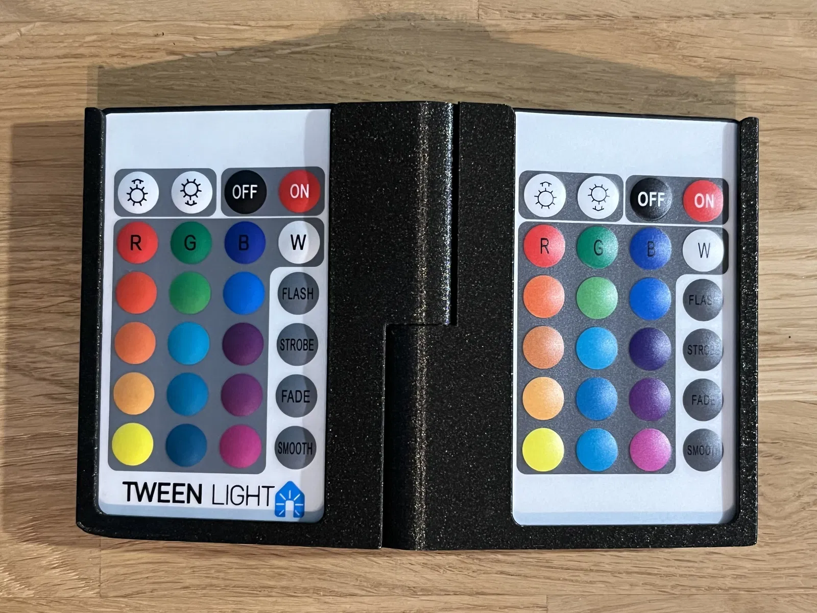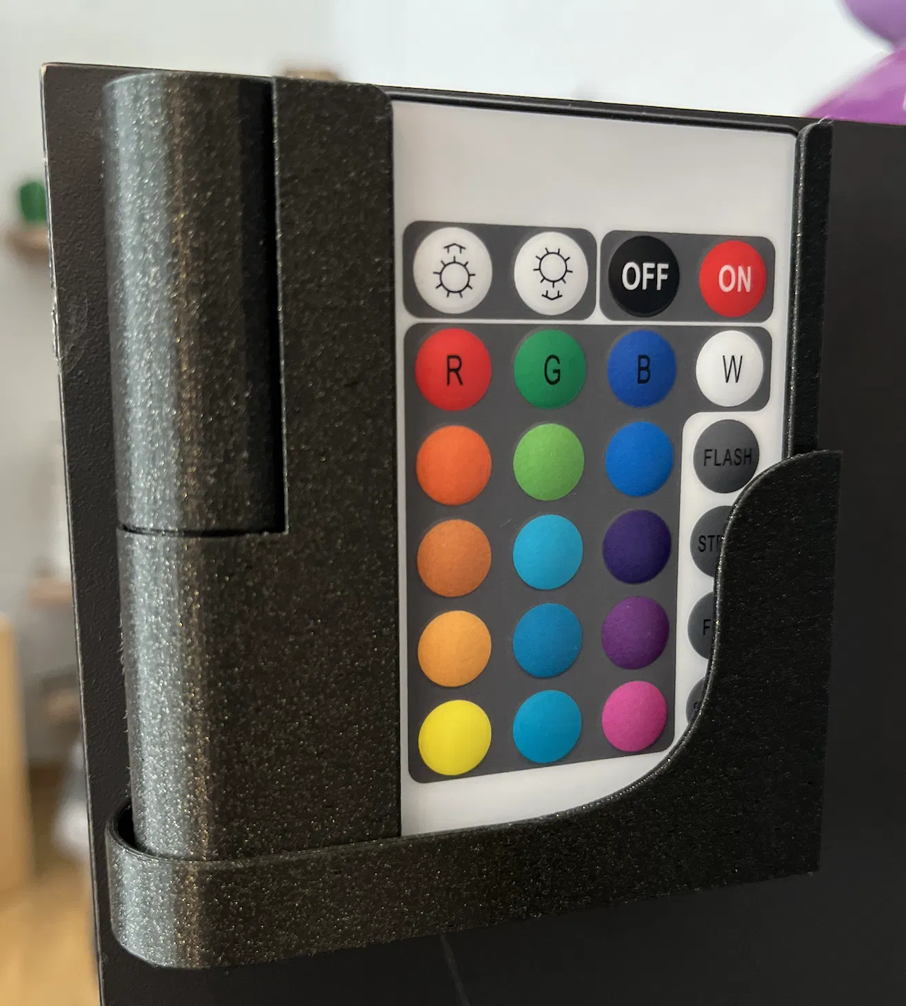Giá đỡ đèn LED có thể gấp gọn cho 2 bộ điều khiển từ xa đèn LED. Giữ remote luôn trong tầm tay, chống hư hại và không cần đến đế gắn tường. Bản lề có thể gãy nếu infill thấp, nên đặt ít nhất 40%.