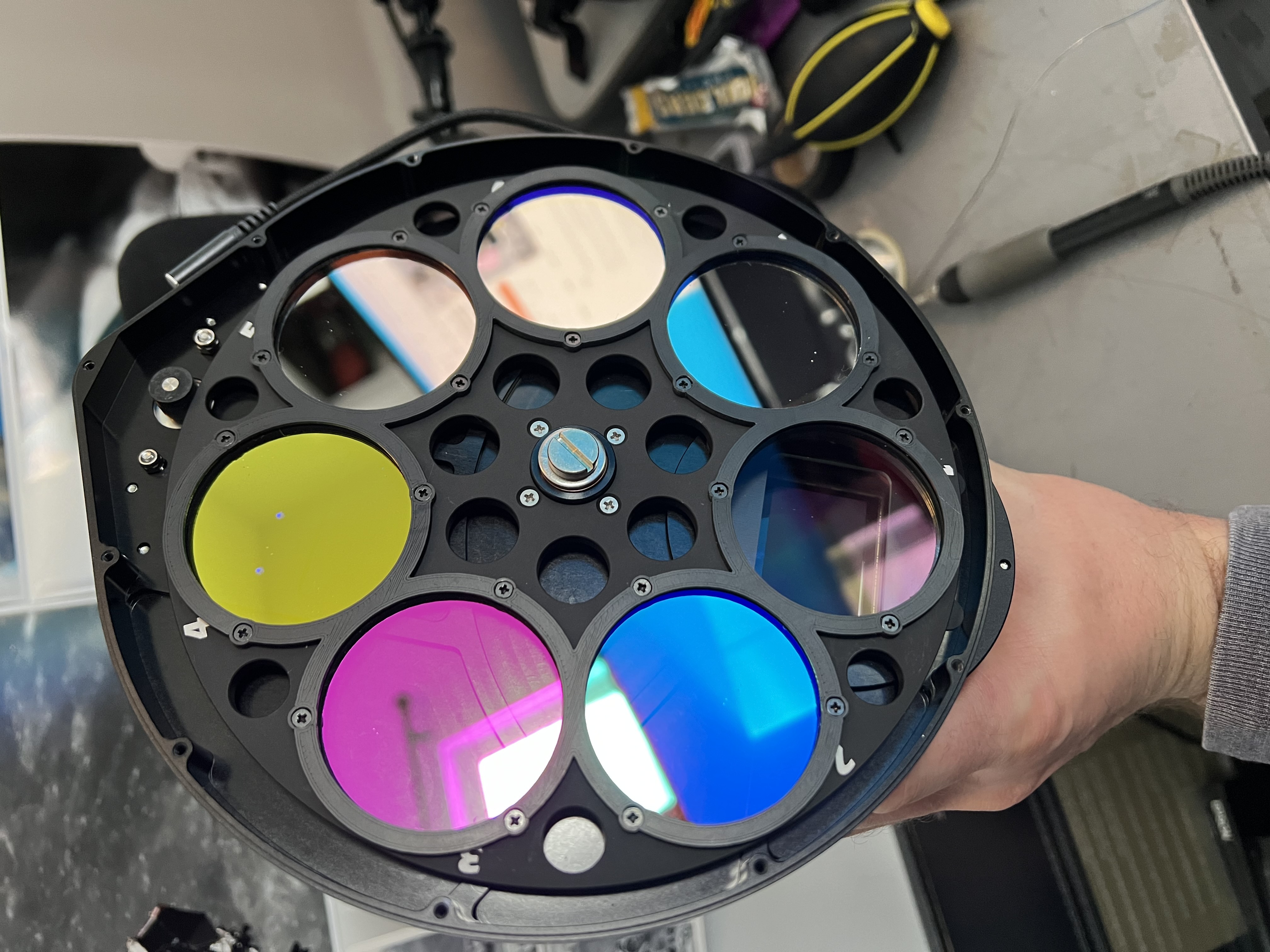Mặt nạ lọc zin đi kèm bánh xe sẽ không xài được với lọc chroma dày 3mm. Có 2 loại: Monolith giữ 7 lọc, Single giữ 1 lọc. Hướng dẫn in và lắp đặt chi tiết.