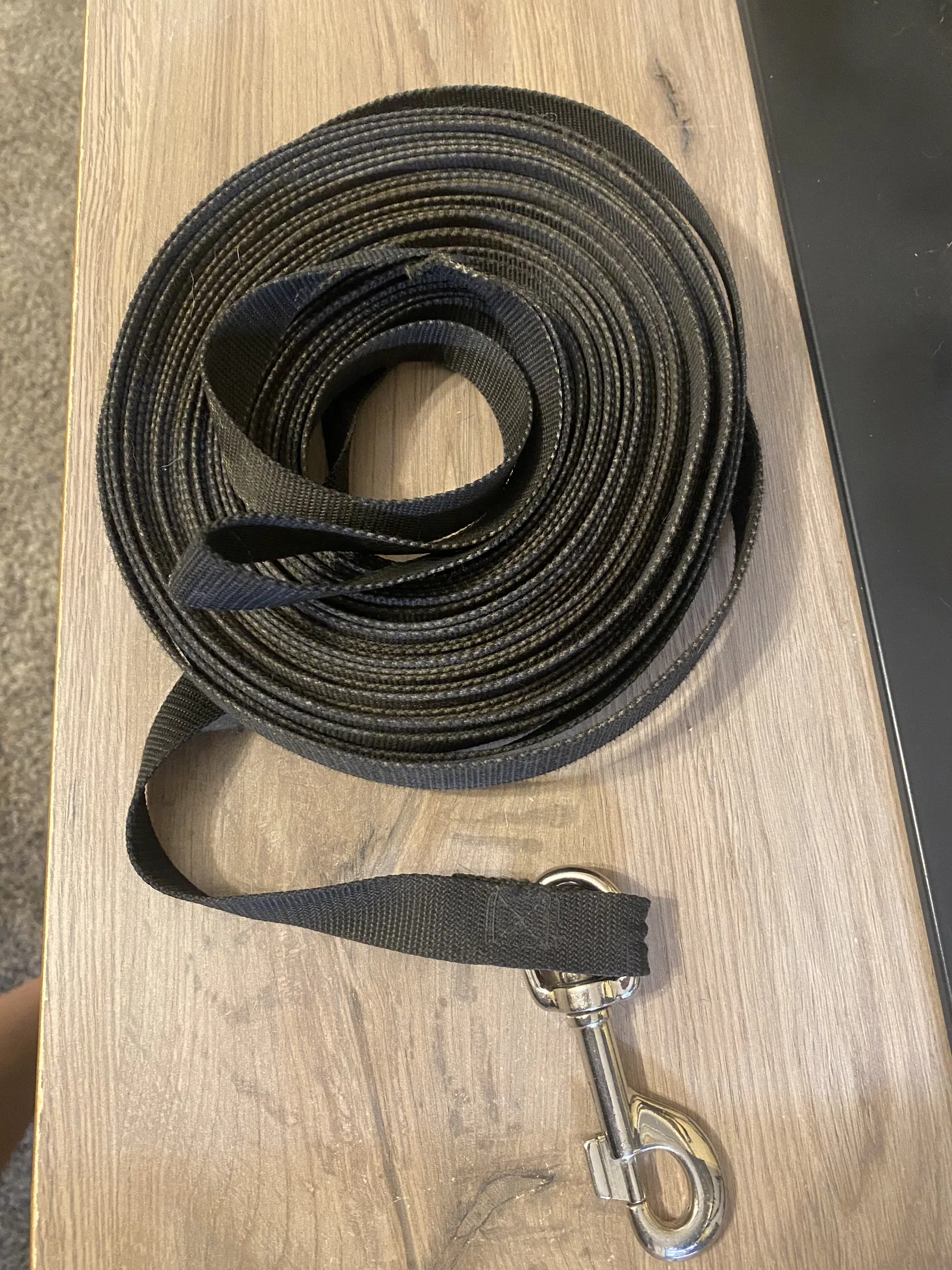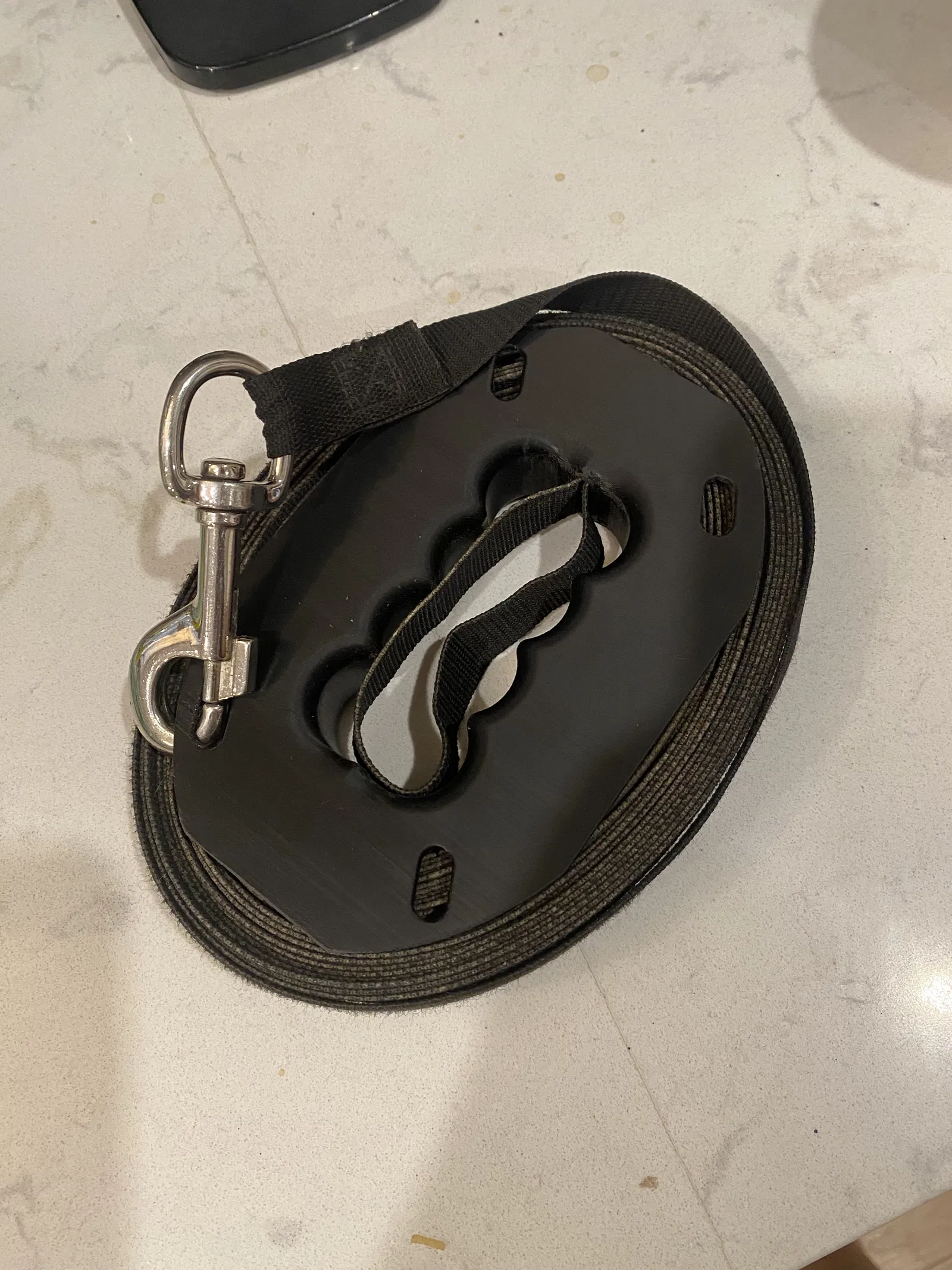 Đây là lần đầu mình thử làm tay cầm/tổ chức cho dây dắt huấn luyện dài 50ft. Dây dắt dạng vải dẹt, dày 1mm, rộng 20mm. Thiết kế này có thể chứa hết dây hoặc có thể cần kéo dài hơn. Mình sẽ cập nhật phiên bản 2 sớm.