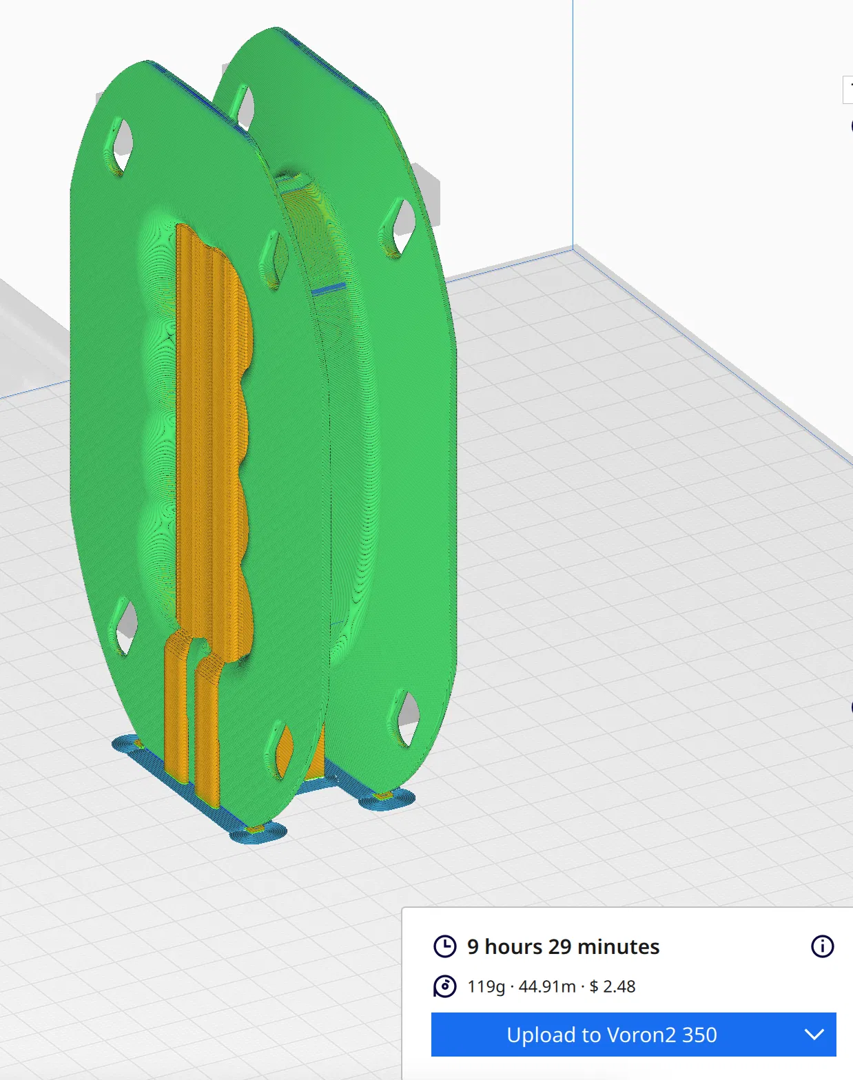 Có dùng hỗ trợ ở khu vực tay cầm, nhưng mình đã chặn chúng ở các điểm móc cho đầu dây dắt như trong một số hình ảnh từ Cura slicer. Bản in mất hơn 13 tiếng, nhưng với cài đặt bình thường của mình thì cho thấy sẽ mất khoảng 9 tiếng. Nói chung, thiết kế này đã ra rất tuyệt, nhưng nó sẽ hoạt động tốt hơn cho dây dắt dài khoảng 20 ft.