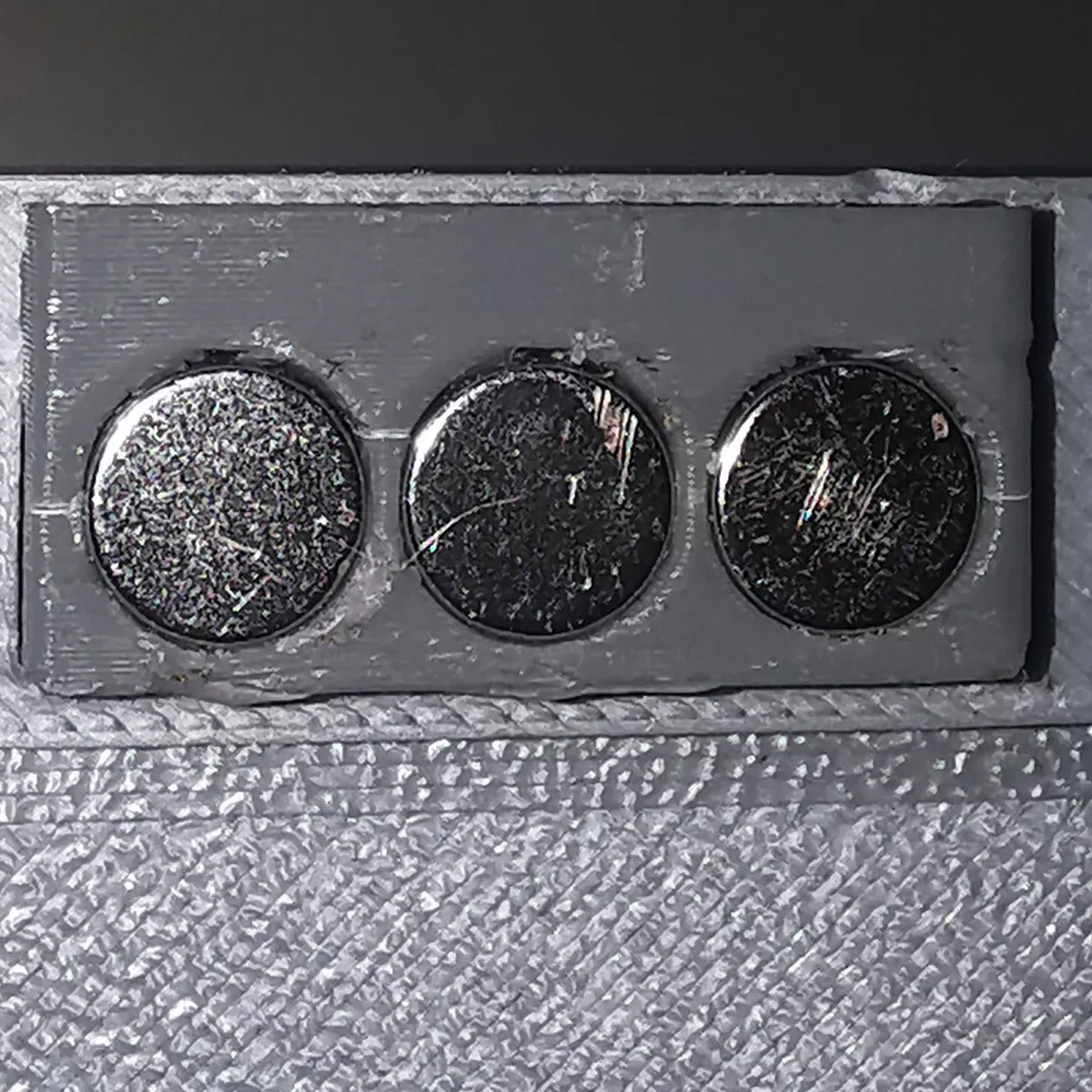 Nhưng mà xài hai cục nam châm 5x3 mm thì hơi bị yếu, nên tui đã làm thêm một phiên bản "chỉ để gắn nam châm" thôi, xài ba cục nam châm 6x3 mm là đủ mạnh để treo mấy tấm hình nhỏ lên tủ lạnh rồi.