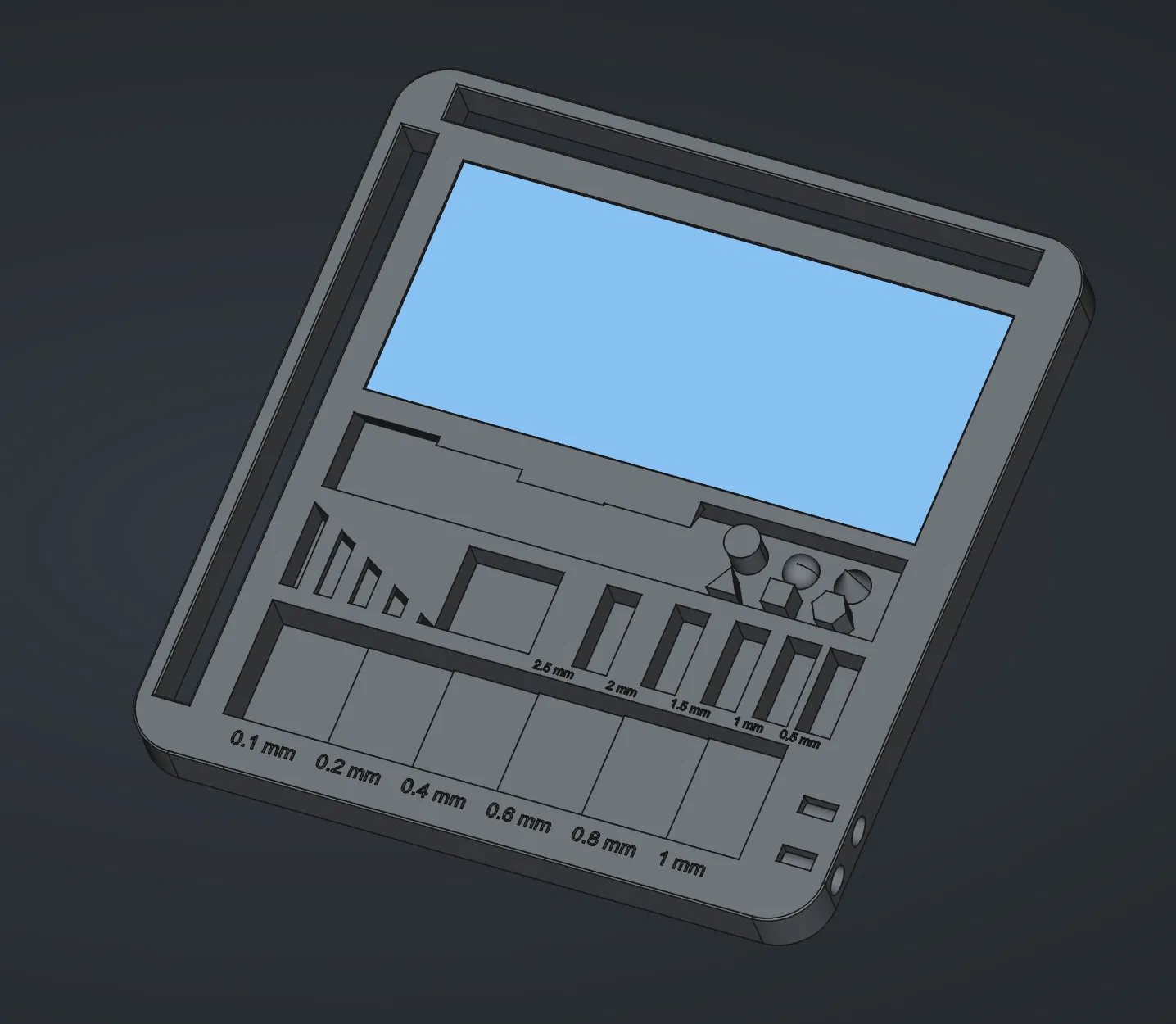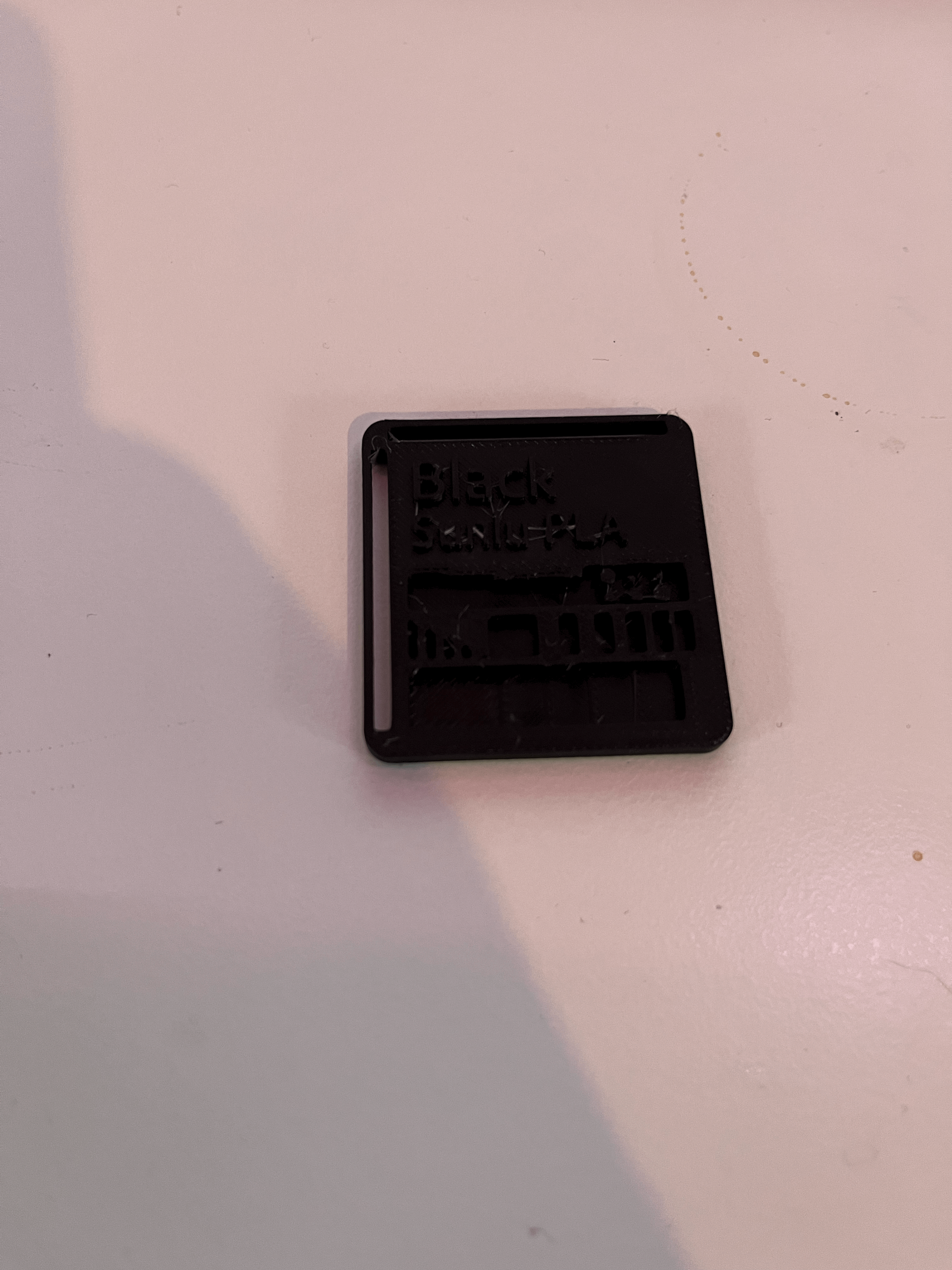 Một mẫu swatch với kích thước nhỏ gọn, kèm theo bài test in. Lưu ý: các hình khối như hình tròn, hình tam giác có thể hơi nhỏ cho một số máy in.