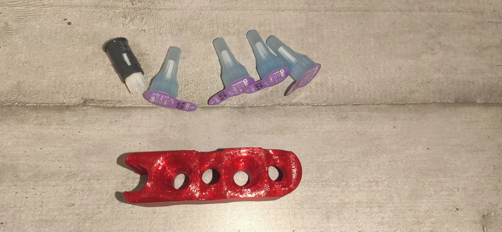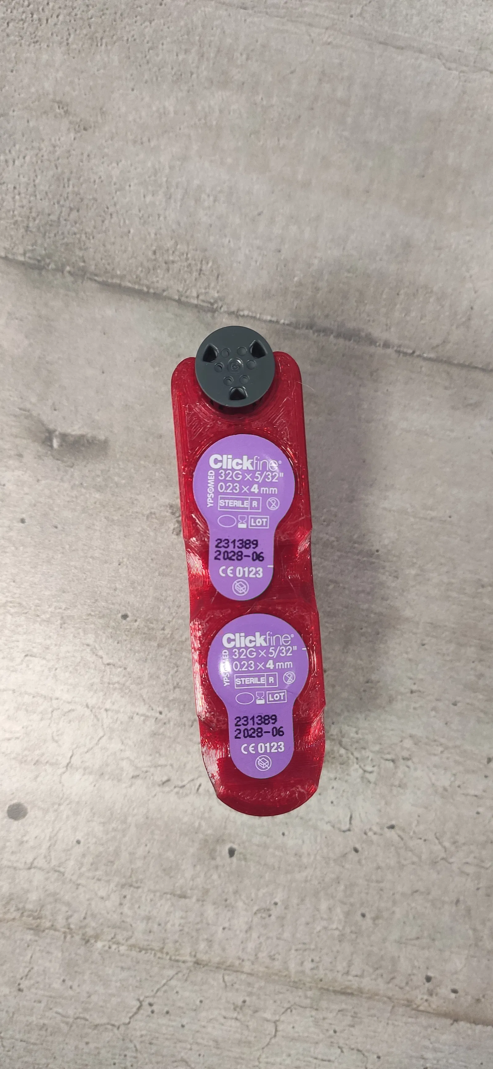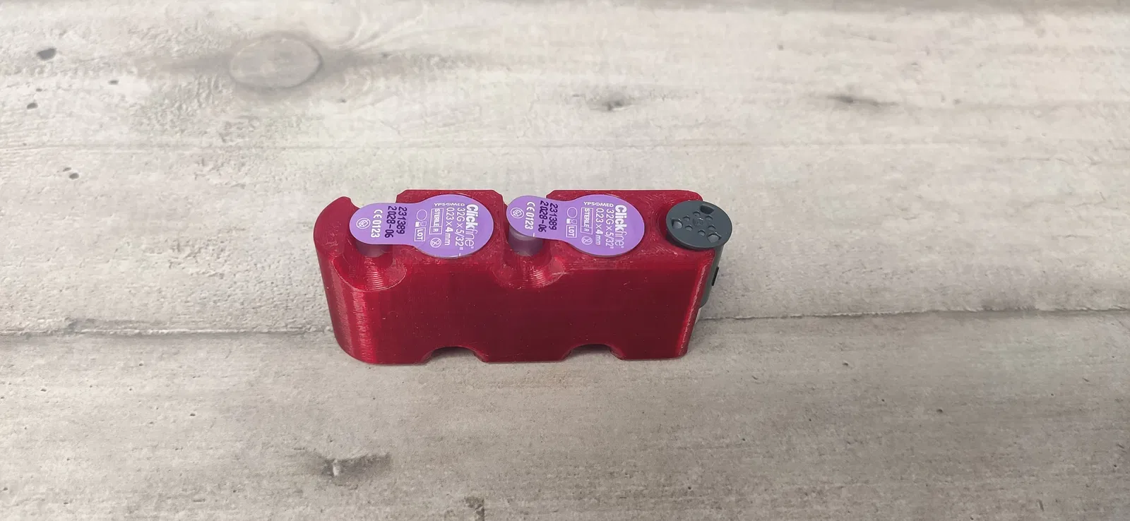 Thiết kế hộp đựng tiện lợi cho 4 kim tiêm insulin ClickFine và 1 ống Fastclix dùng bút lấy máu. Giúp việc tiêm chích và di chuyển hàng ngày trở nên dễ dàng hơn.