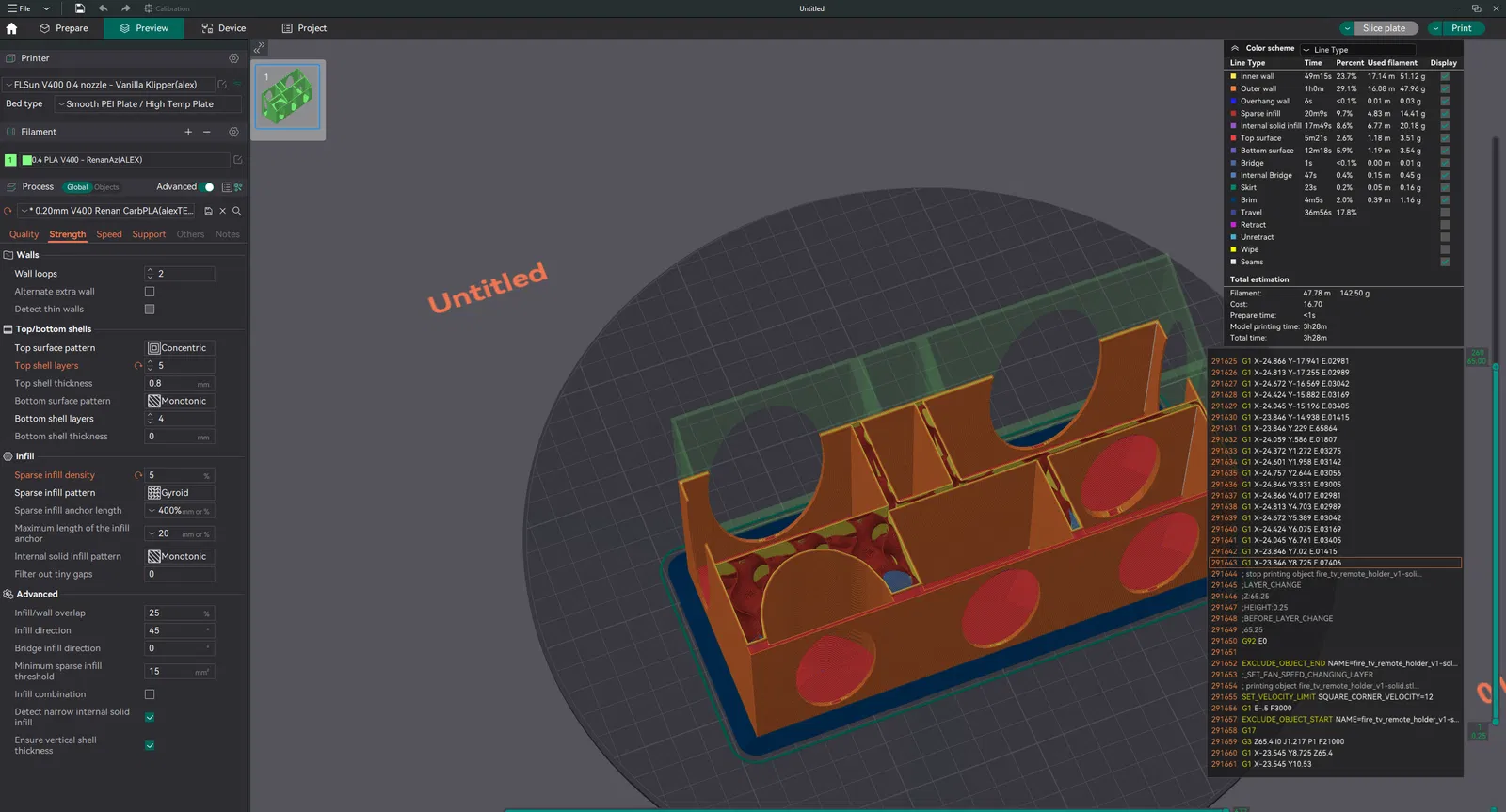 -chiều cao lớp 0.2 đến 0.3 -2 lớp thành và bật "in tường mỏng" hoặc "Tường Arachne"(!) -0-15% lưới Gyroid (nếu bạn dùng <10% lưới tôi khuyên dùng 5-6 lớp trên cùng) -BẬT CẦU NỐI!! (hạ thấp "chiều dài tường cầu nối tối thiểu" trong cura) -chỉ cần hỗ trợ nếu bạn muốn nhưng không cần thiết khi bật chế độ cầu nối