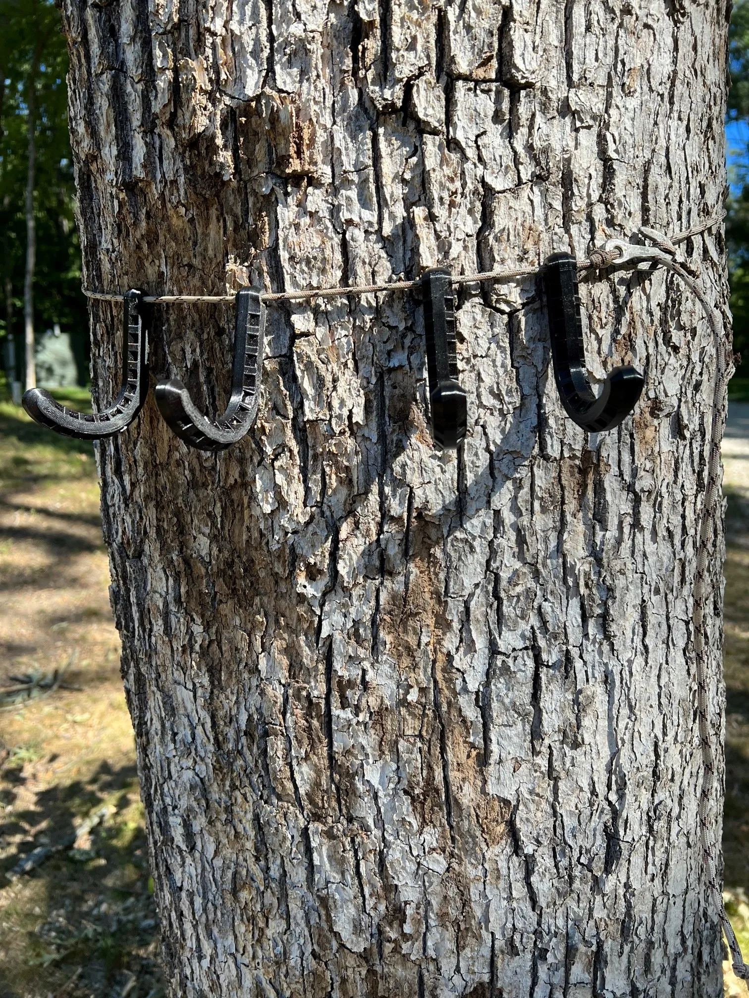 Chỉ cần quăng dây quanh một cái cây và quấn nó quanh móc neo. Nó có thể chịu được một lượng trọng lượng đáng ngạc nhiên.