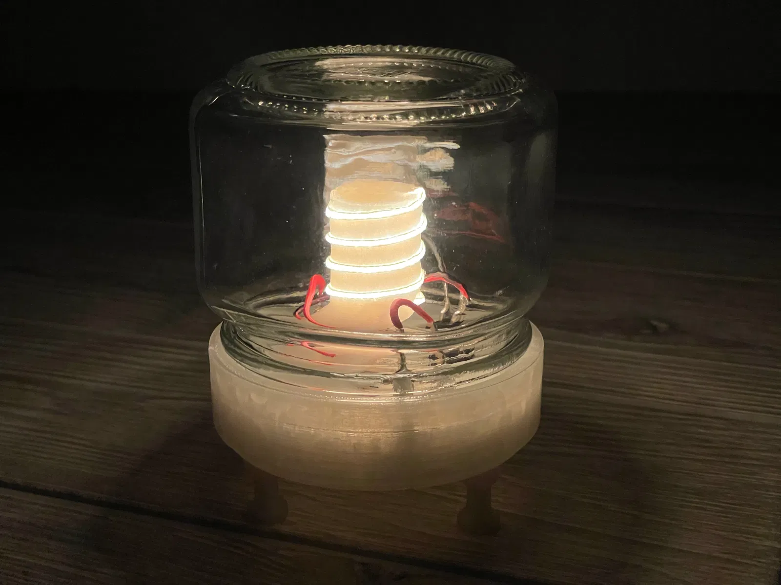 Đèn lồng dùng pin, có thể lắp vừa bất kỳ hũ thủy tinh thông thường nào. Mẫu này có thêm chân đế và móc treo, dễ dàng gắn vào nắp, cho phép đèn đứng vững hoặc treo lên. Rất tiện lợi cho mọi nhu cầu chiếu sáng.