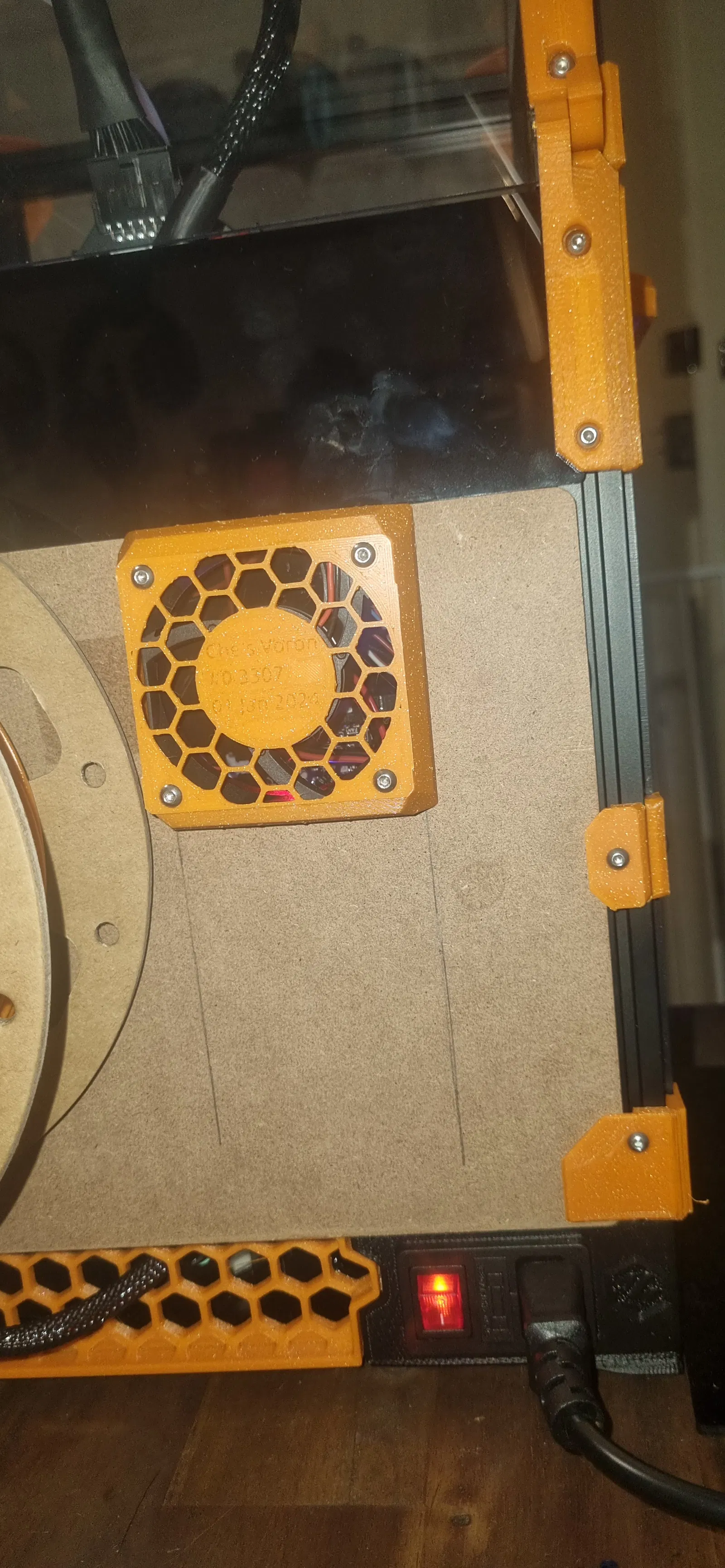 Vì lý do này, và vì vị trí đặt cuộn dây filament của tôi, tôi cần sử dụng quạt 6015 để thông gió nóng khô khỏi khoang điện tử của Voron 0 và thay thế nó bằng không khí nóng ẩm từ phòng học của tôi.