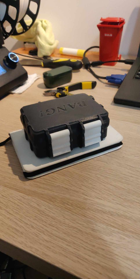 Đây là một hộp đựng bài BANG!, dựa trên hộp đựng bài UNO cứng cáp của Markus_p. Ch chặp cái hộp bên trong vào đáy và chú ý đến hướng đặt. Hộp bên trong có một dấu chấm nhỏ. Dấu chấm này phải hướng về phía trước. Tui đã thay đổi kích thước của hộp bên trong để phù hợp với kích thước bài BANG!, tui đã thêm các chốt thay vì ốc vít từ xander: