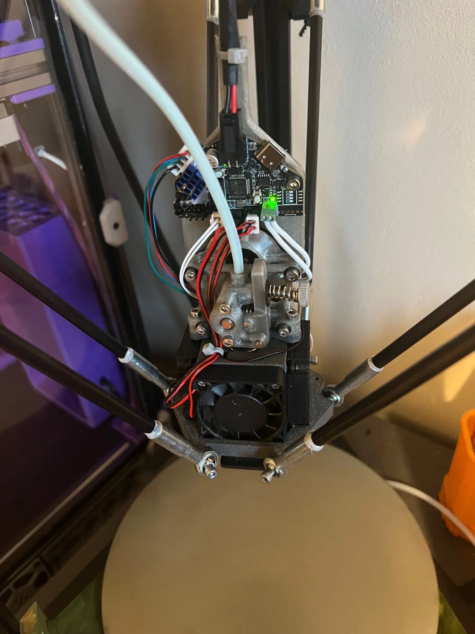 Cũng khuyến nghị dán chặt tấm nền và lồng v6 bằng acetone hoặc polycement để tăng cường độ cứng của các bộ phận. Sử dụng vít M3 được lắp lỏng từ phía dưới để căn chỉnh trong khi keo đang khô. Đây chỉ là tấm nền của bộ điều khiển, vui lòng xem mô hình gốc trên thingiverse cho phần còn lại của đầu công cụ điều khiển (lồng E3Dv6 và ống quạt, v. v. ). Kích thước cho quạt tản nhiệt 40mm và hai quạt thổi 4010 có thể hơi chật, bạn có thể cần mài bớt cạnh của quạt một chút