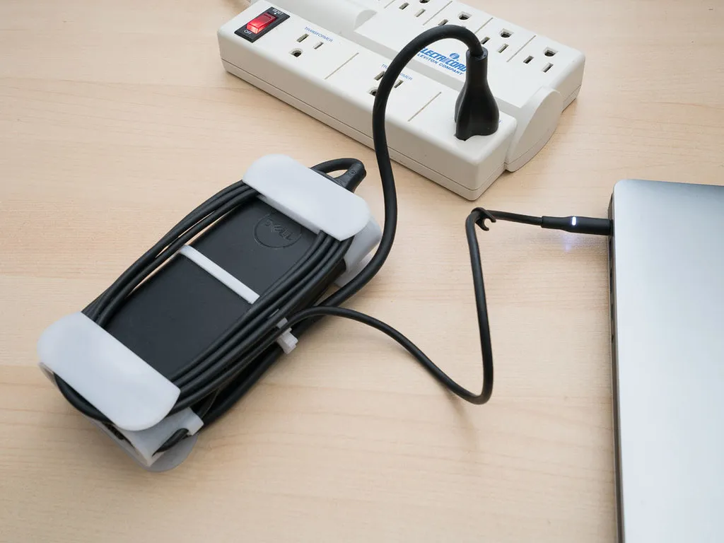 Trình quản lý dây cung cấp năng lượng máy tính xách tay được thiết kế để phù hợp với bộ điều hợp nguồn 130W (2,6 "x .87") cho máy tính xách tay XPS 15 "của Dell.