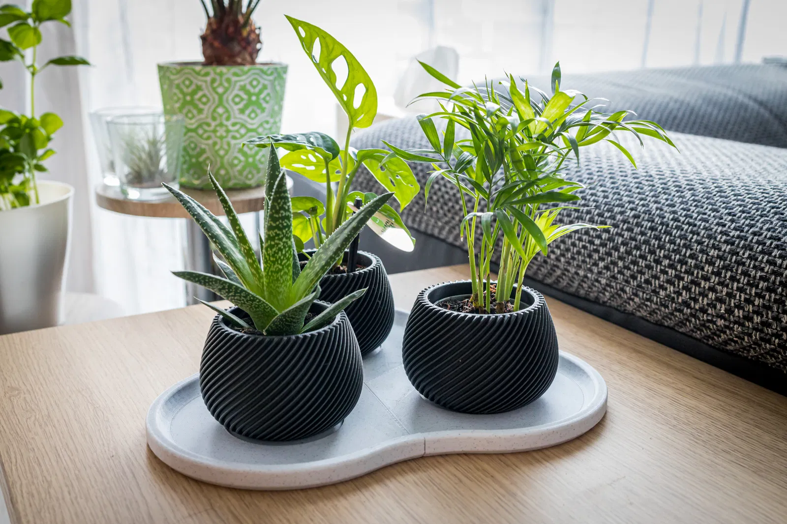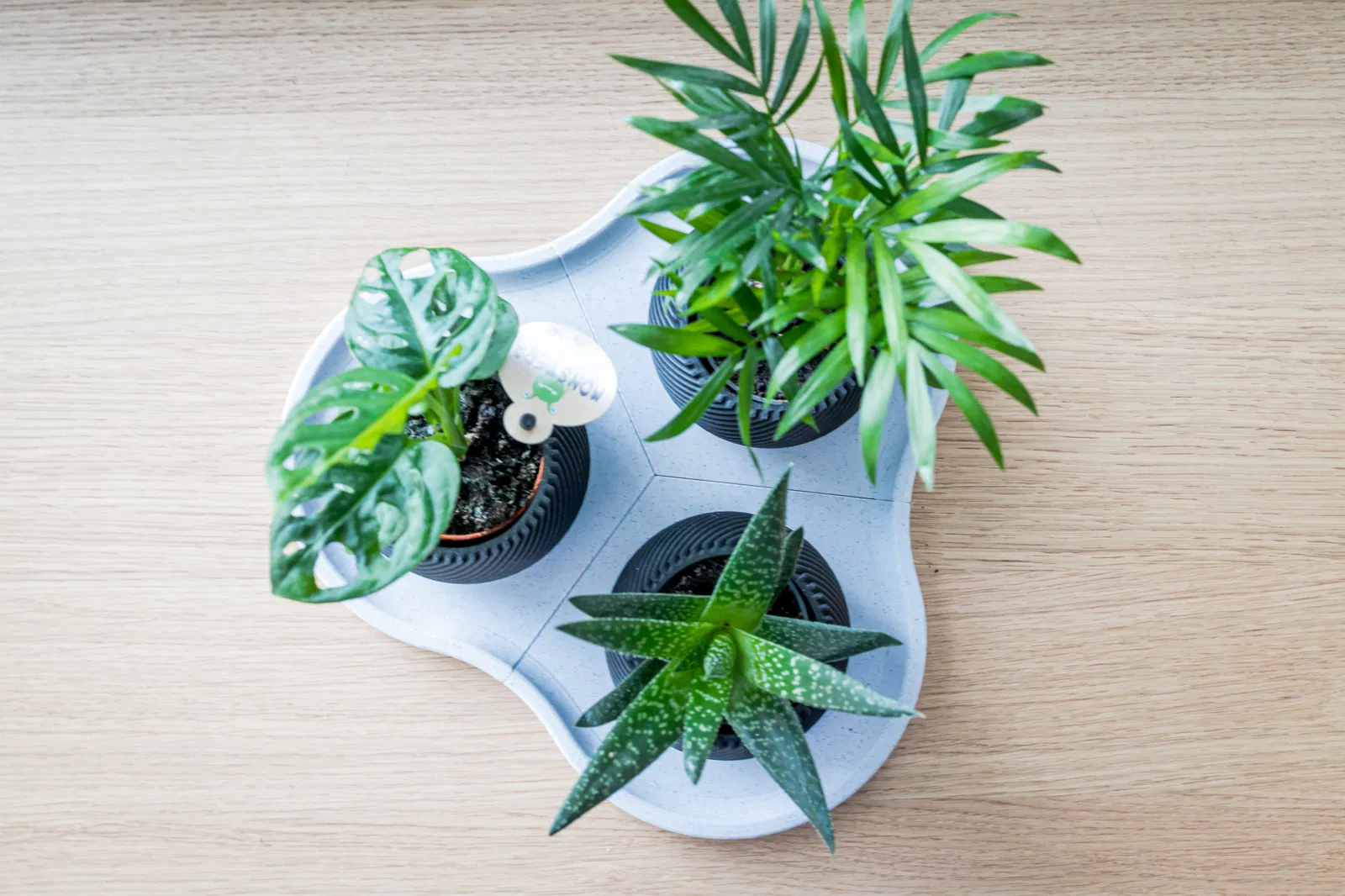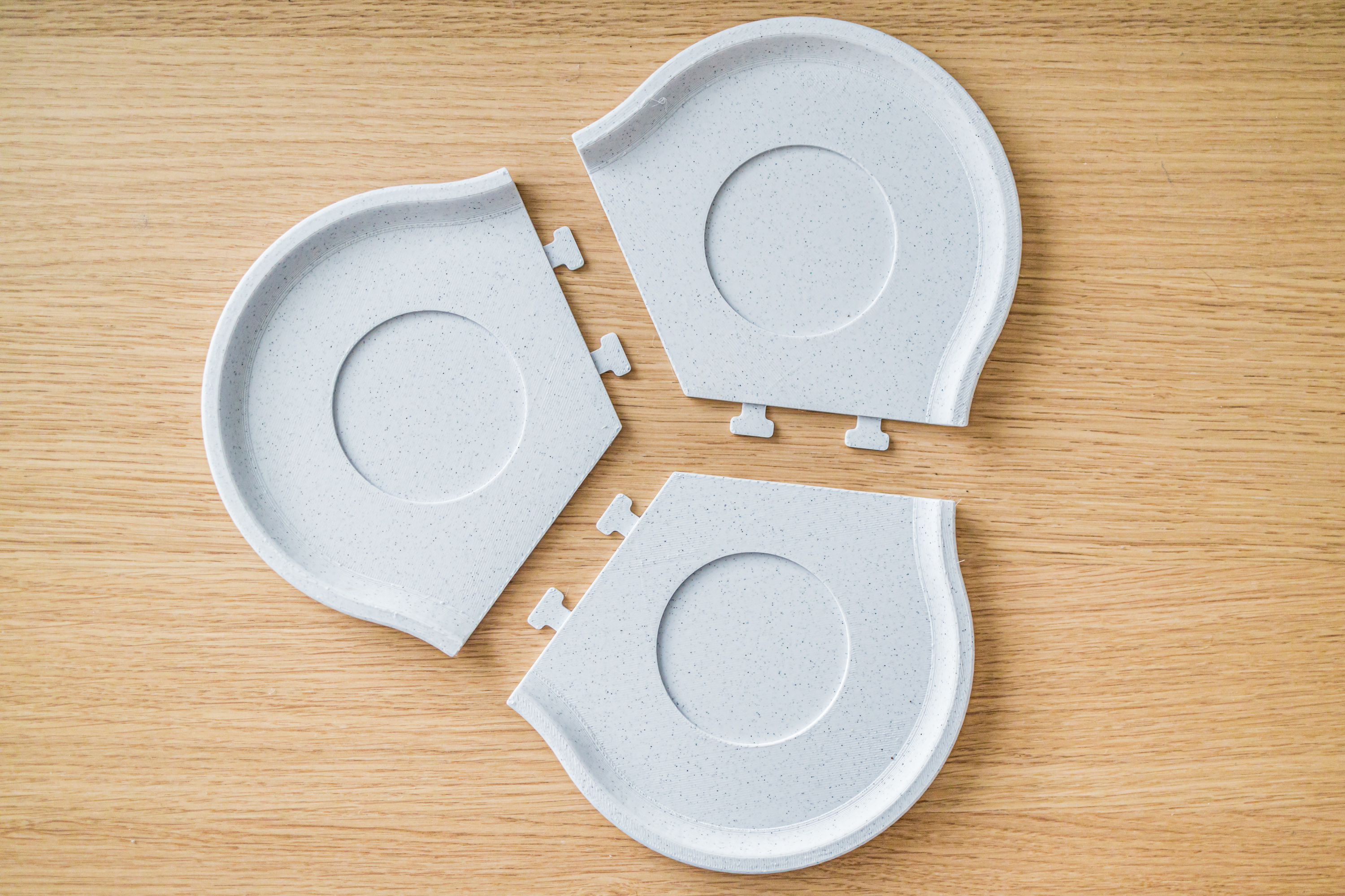 Đế chậu module này được thiết kế để đựng 3 chậu hoa xoắn hiện đại. Thiết kế được chia thành 3 phần để dễ dàng in trên máy in 3D nhỏ, có thể ghép lại. Phiên bản đầy đủ cũng có sẵn cho bàn in lớn. Lưu ý điều chỉnh tỷ lệ cho phù hợp với kích thước chậu.