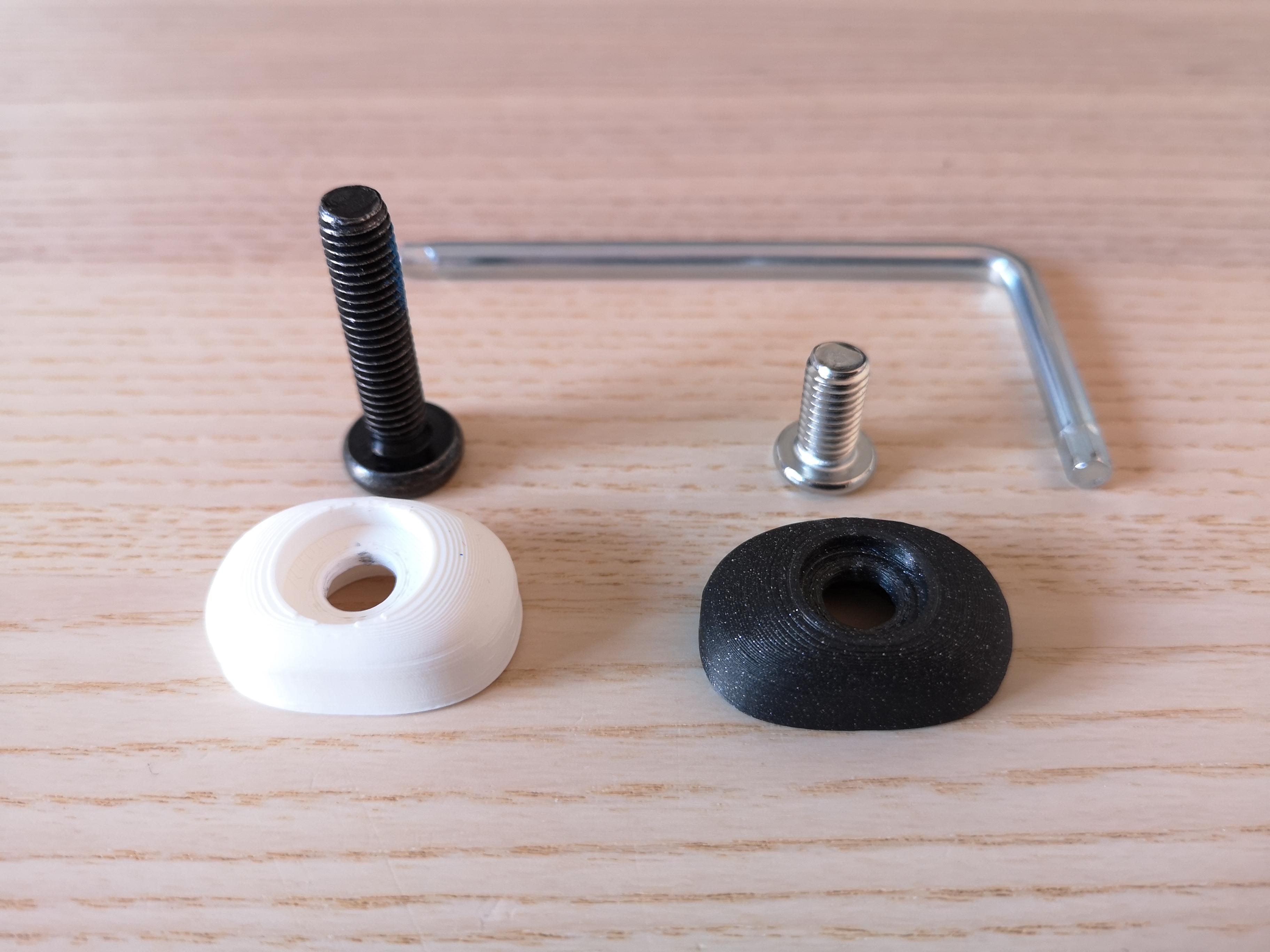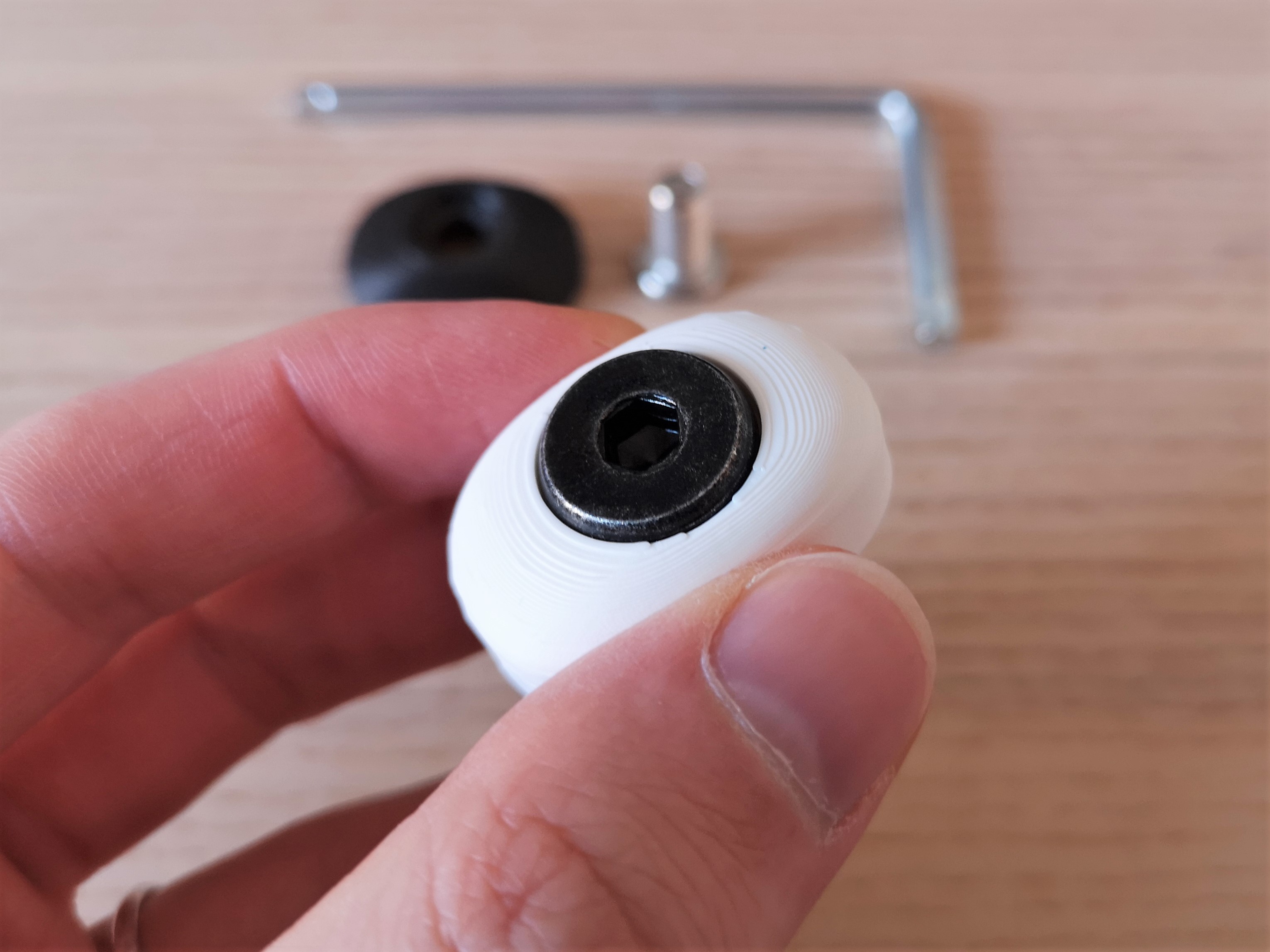 Tui mê cái ghế văn phòng IKEA Markus lắm. Mà khổ cái, do cái tay vịn nó không chỉnh được với cái kiểu ngồi của tui, tui toàn bỏ tay vịn ra thôi. Như vậy á thì mấy cái lỗ bắt ốc tay vịn nó cứ bị hở ra, với lại vải ghế nó cứ bị giãn ra nhìn kì lắm. Mấy cái nắp đơn giản này vừa làm nắp đậy vừa làm kẹp để giữ vải ghế cho nó căng ra. Nhìn nó cũng không có lồi ra nhiều đâu, với lại cái dáng nó tròn tròn mềm mềm cũng êm ái, lỡ mà mấy bồ ngồi kiểu "sáng tạo" như tui thì cũng không sao. Nhà tui có hai cái ghế Markus lận, mà cái "ống trụ để bắt ốc" nó hơi khác nhau chút, cái thì nhô ra 7 mm còn cái kia thì 8 mm. Tui có để sẵn cả hai phiên bản cho mấy bồ luôn. Nếu ghế của bồ khác thì cứ tự nhiên sửa lại file nha. Tui có mua mấy con ốc đầu nhỏ hơn với ngắn hơn cái ốc zin. Cái đầu ốc đo ra đường kính 13.5 mm x cao 3.5 mm. Ốc là loại M8 x 16 mm. Tui có để sẵn hai phiên bản nắp tương thích với ốc zin (IKEA 122134), mà tui thấy nó hơi dài á (bồ cứ cắt ngắn bớt cũng được, dĩ nhiên rồi). Nếu mà bồ hông muốn mua ốc mới hay bị mất ốc zin thì đây là link tới mẫu ốc M8 mà bạn Qbi có chia sẻ (cảm ơn bạn nhiều nha). Mấy cái nắp này cần có một chút support cho cái lỗ ở giữa. Tui in mẫu của tui bằng thông số 0.16 LH, 3 lớp thành dày và 20% infill. BONUS HAY HO: bồ có thể dùng mấy cái nắp này để "đánh dấu" ghế cá nhân ở văn phòng chung, hoặc đơn giản là thêm chút màu sắc cho nó đẹp. Chúc mấy bồ vui!