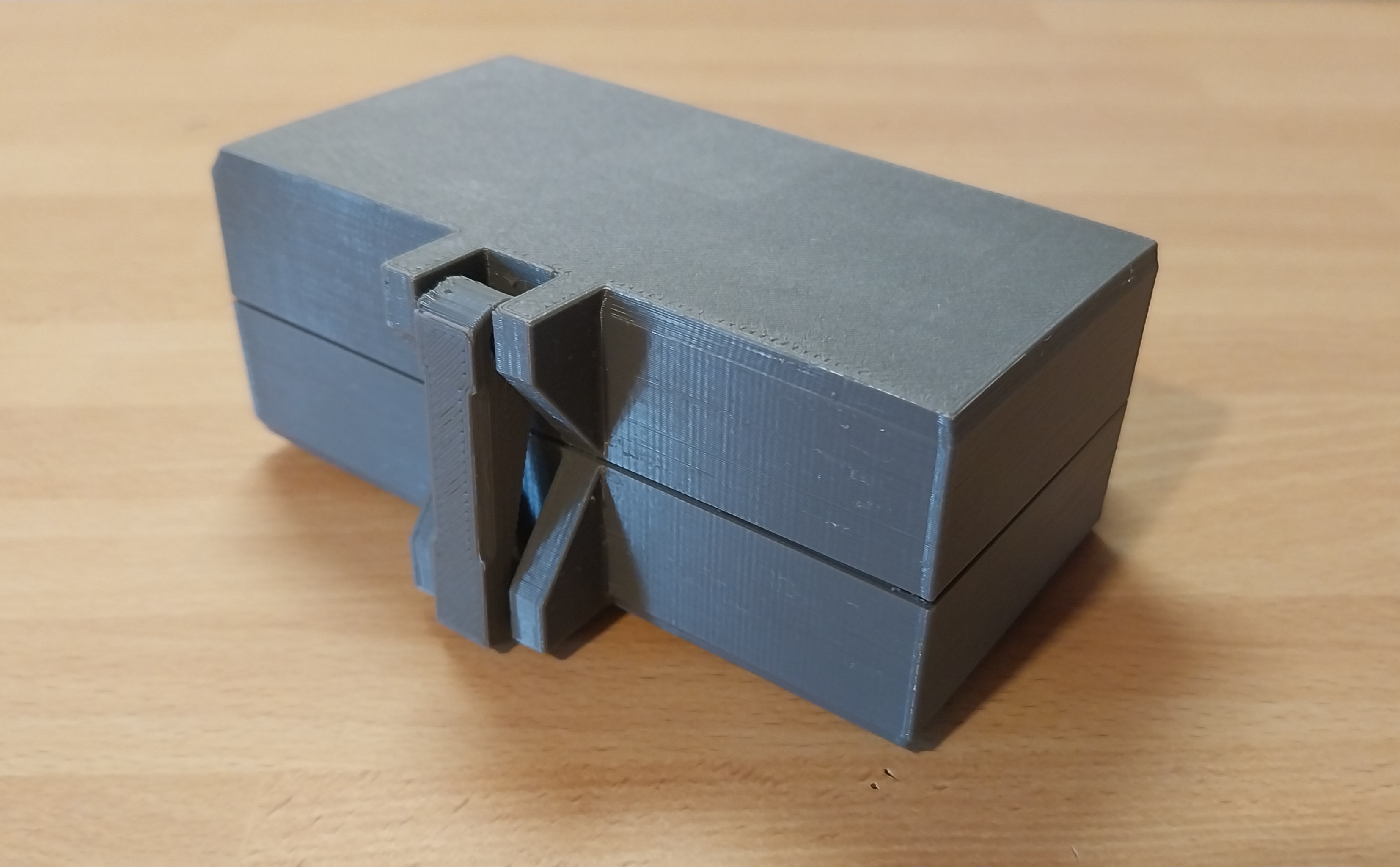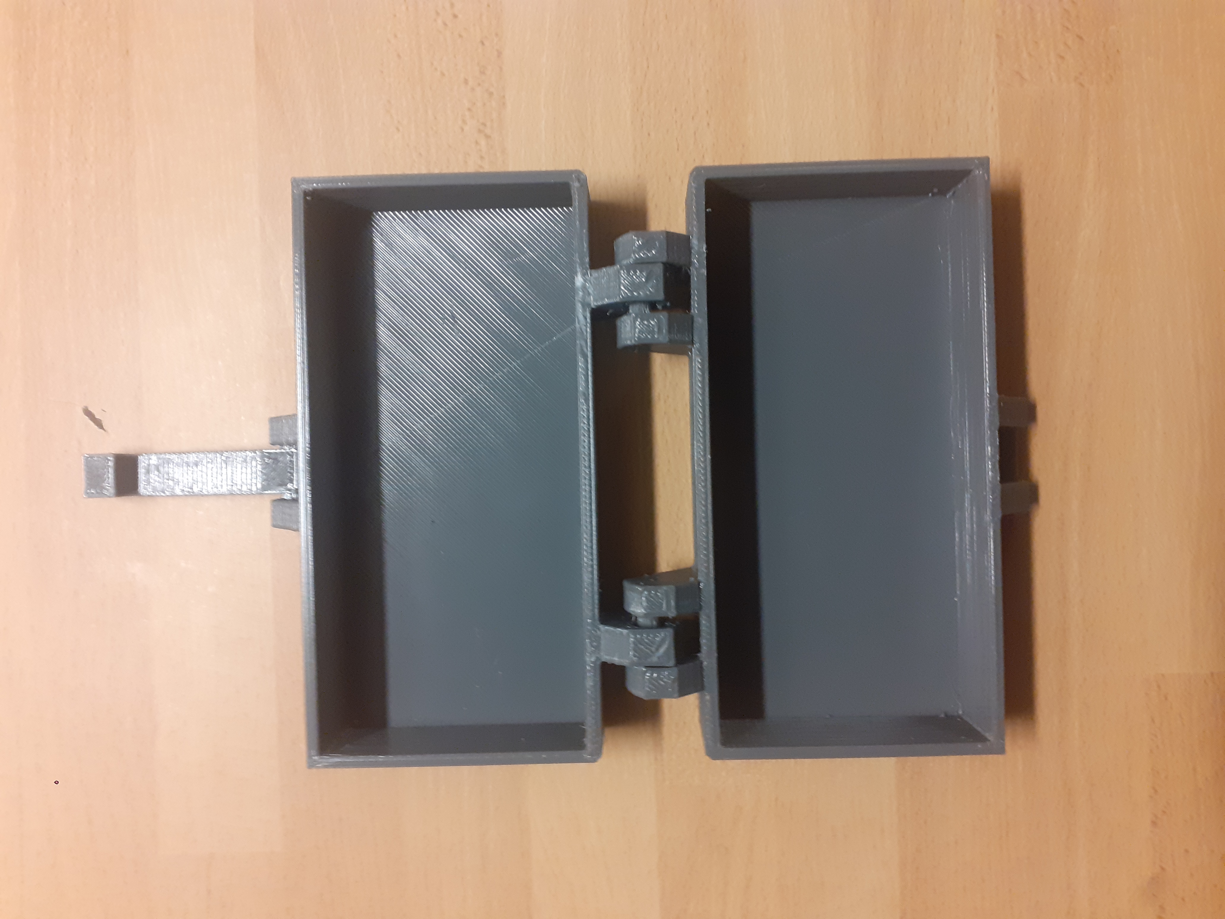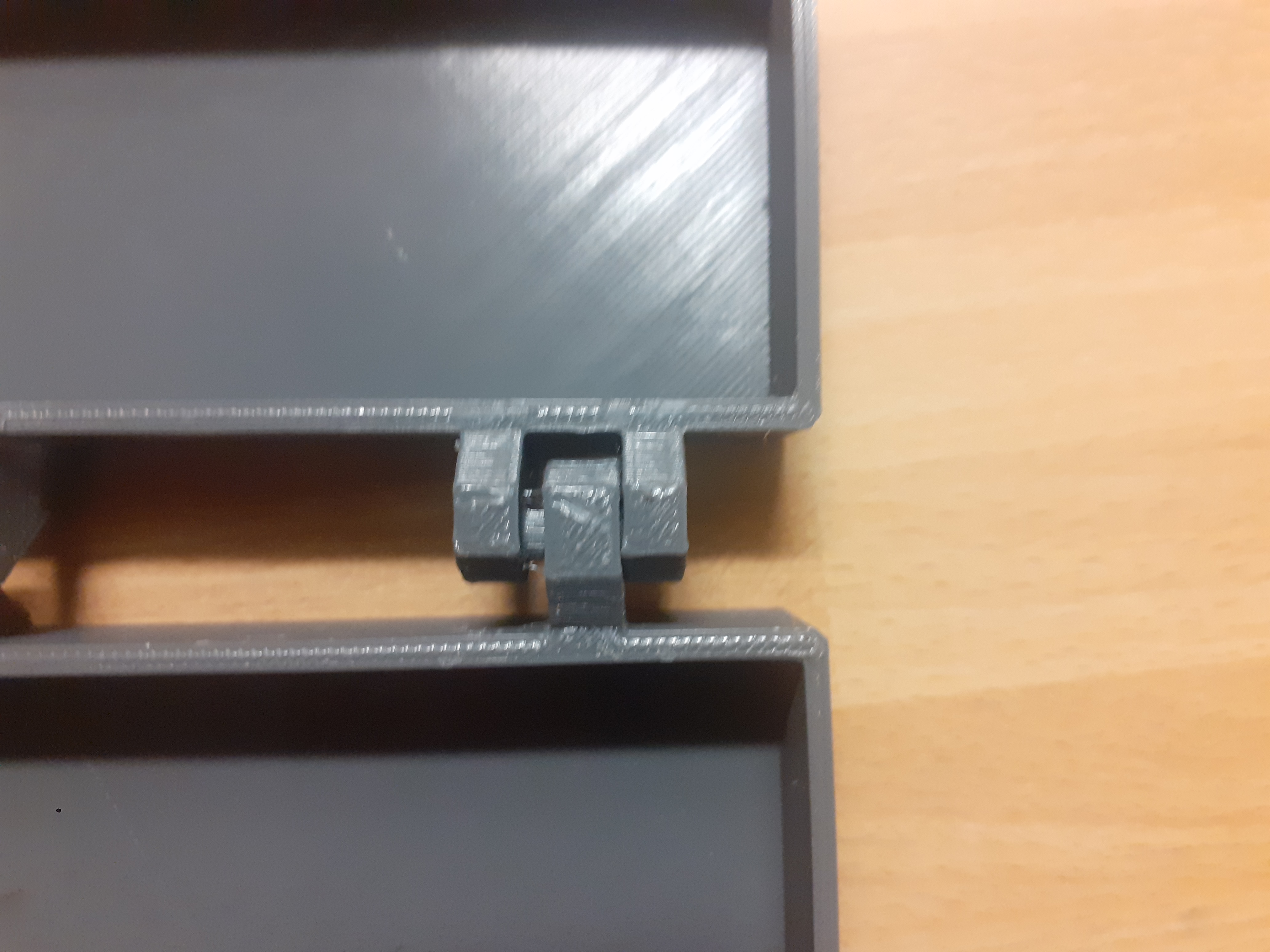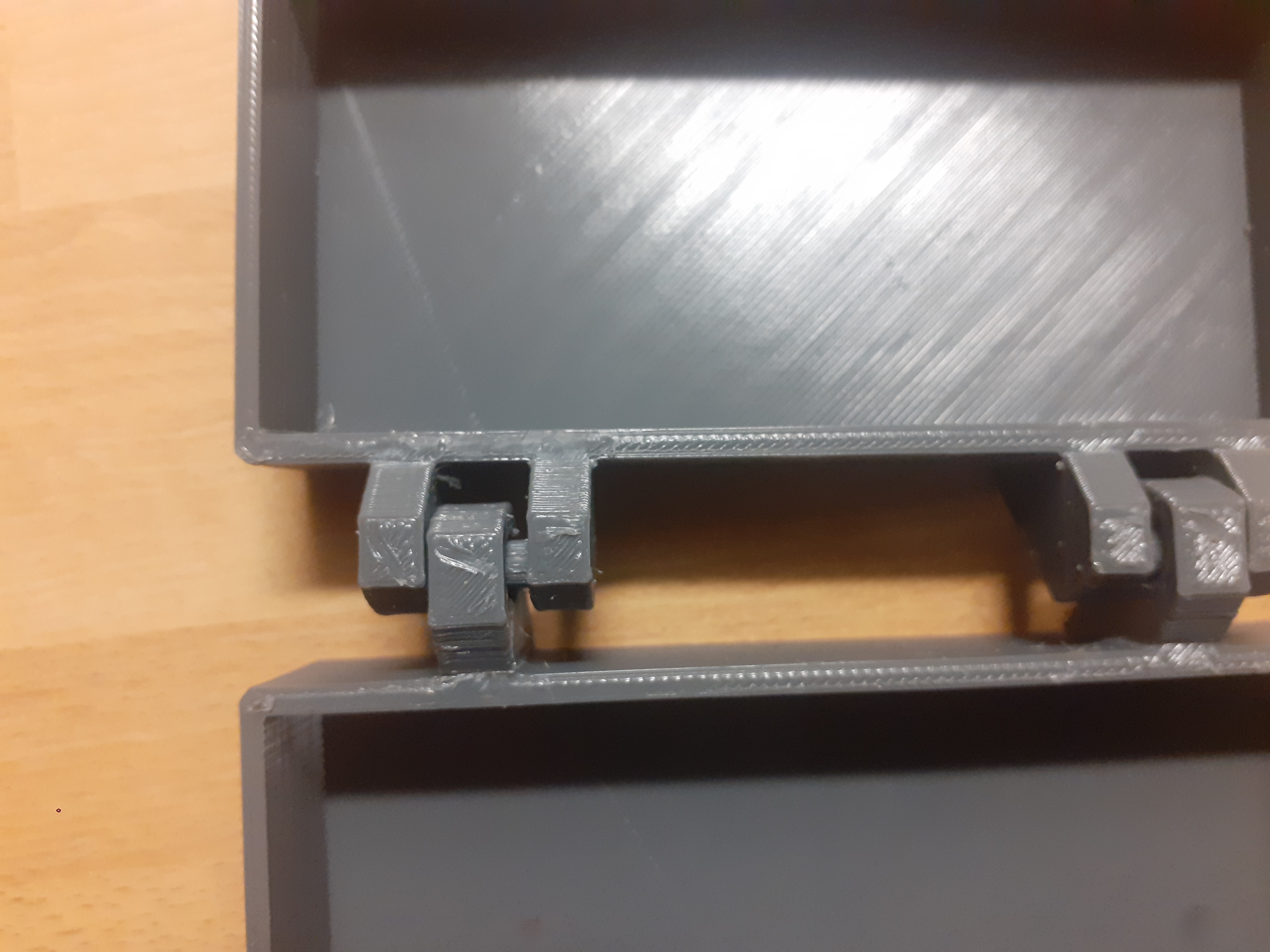 Mô hình hộp in tại chỗ được phối lại, sửa lỗi lung lay ở bản lề. Bản này dùng PETG, lớp 0.2mm, 5 lớp trên/dưới, 2 chu vi và lưới Gyroid 15% cho bản in chắc chắn hơn.