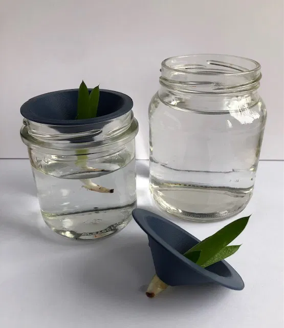 Dụng cụ nhỏ này gắn vào bình nước giúp giữ cây thẳng đứng trong quá trình ra rễ. Phù hợp cho miệng bình 5.5-6cm, có hai loại với kích cỡ lỗ khác nhau cho cành nhỏ và lớn, in không cần support.